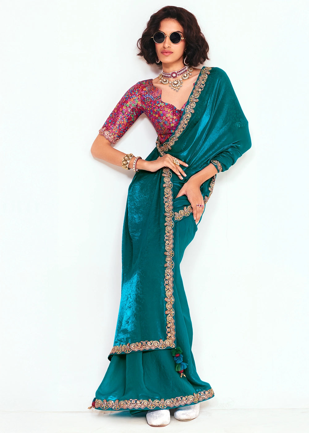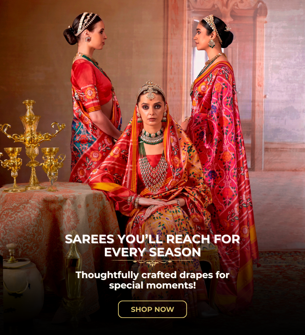 Egyptian Blue Satin Crepe Saree with Traditional Patola Print