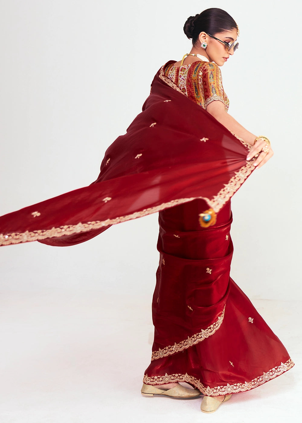 Silver Grey Designer Tissue Organza Saree With All-Over Buttas And Hand Embroidered Blouse