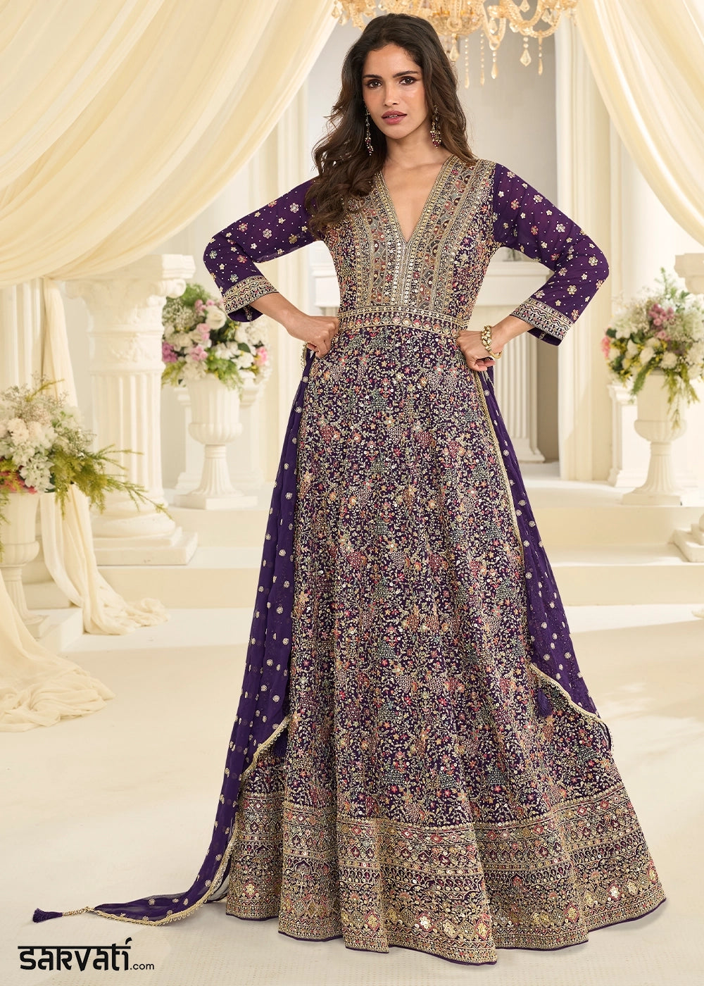Amethyst Purple Chinon Silk Anarkali Gown with Elegant Embroidery Work
