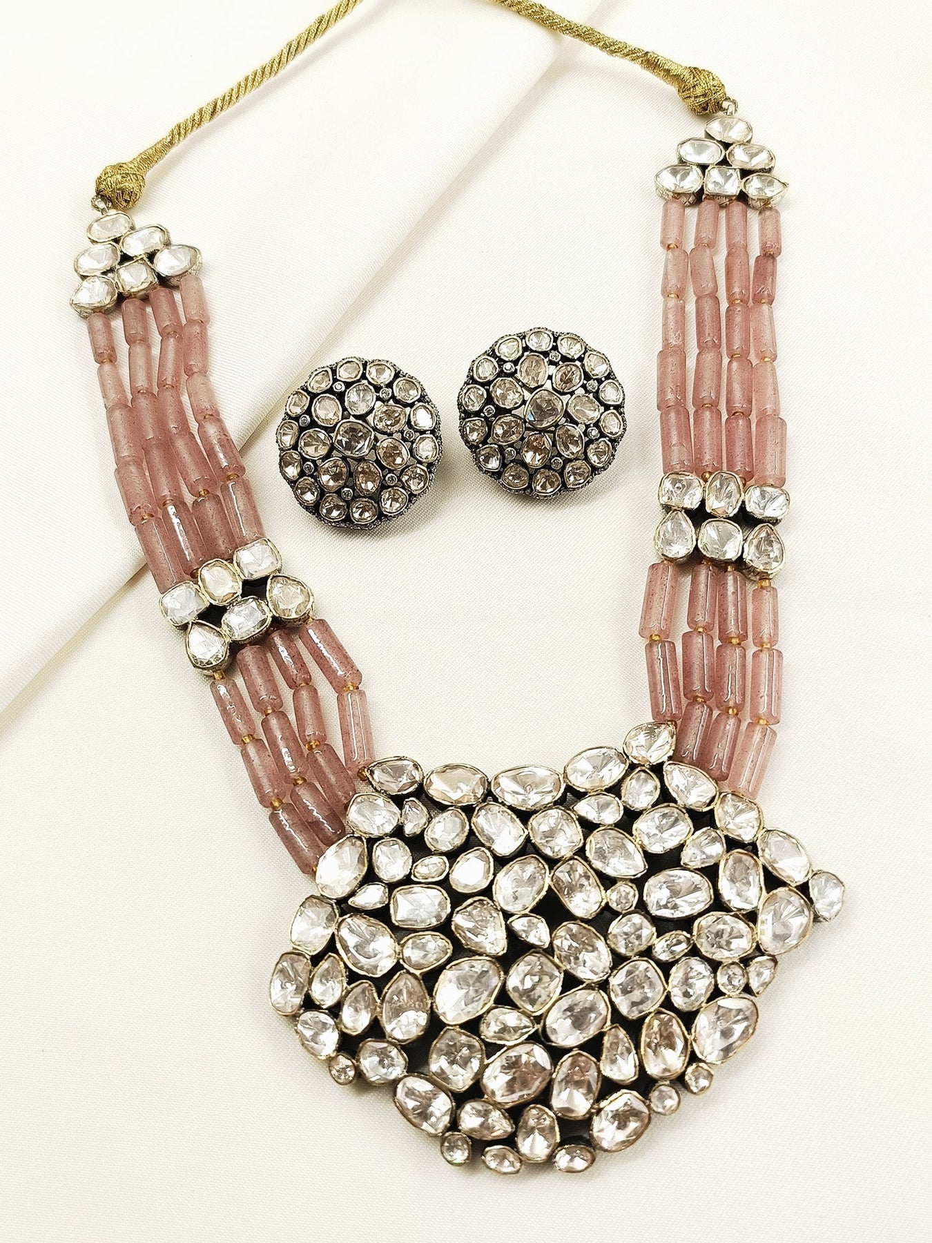 Crafted From 92.5% Pure Silver With An Antique Gold Plating, This Moissanite Necklace Set Combines Timeless Elegance With Durability. Featuring Expertly Cut Moissanite Stones, It Offers The Brilliance And Fire Of Diamonds At A Refined, Accessible Level. The Rosecott Finish Enhances Its Vintage Charm, Making It Ideal For Both Formal Occasions And Everyday Sophistication.