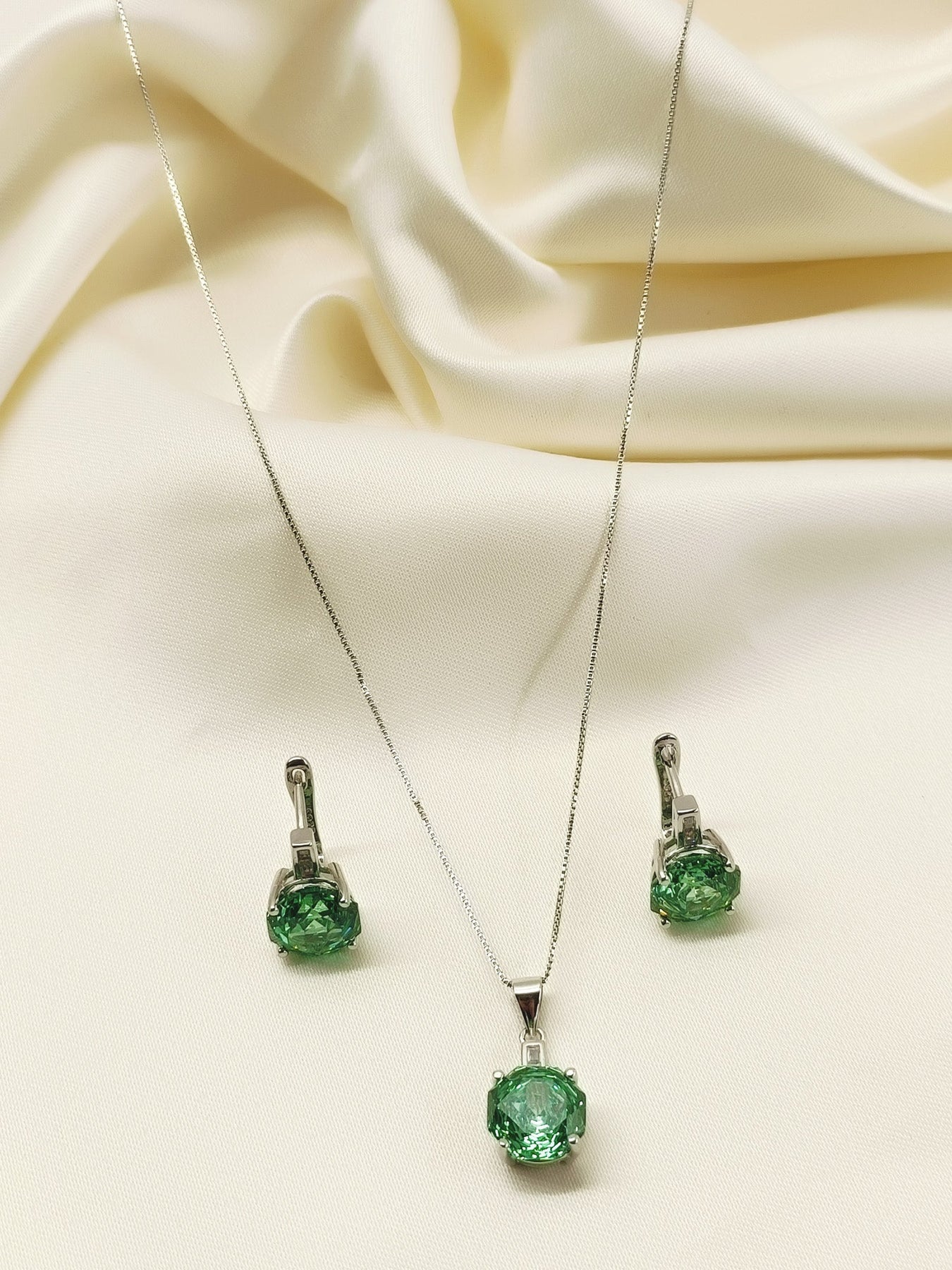 Kasni Green 92.5 Silver Peridot Gemstone Pendant Set
