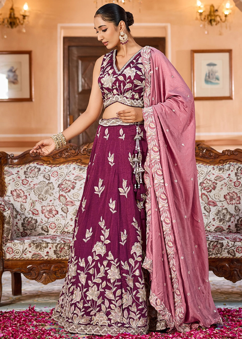 Mulberry Purple Embroidered Silk Lehenga Choli with Sequins Work