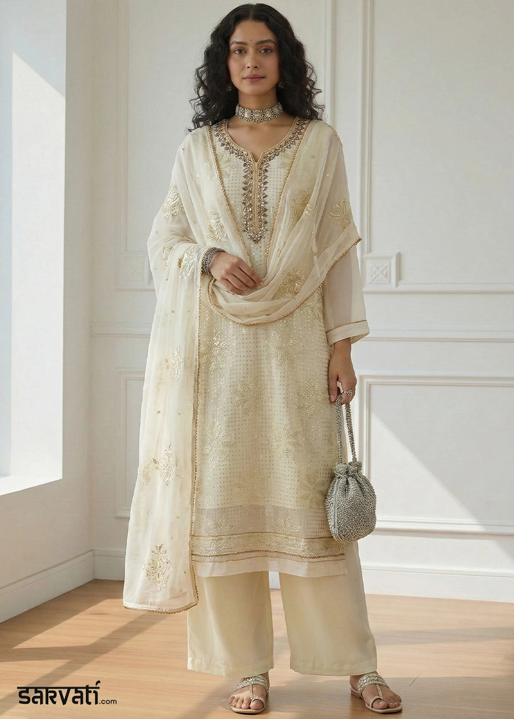 At Sarvati.com, we strive to present our designs with the utmost accuracy. However, actual product colors may vary slightly due to screen settings and lighting conditions during photography. Additionally, any accessories featured in the images are for styling purposes only and are not included unless explicitly mentioned.