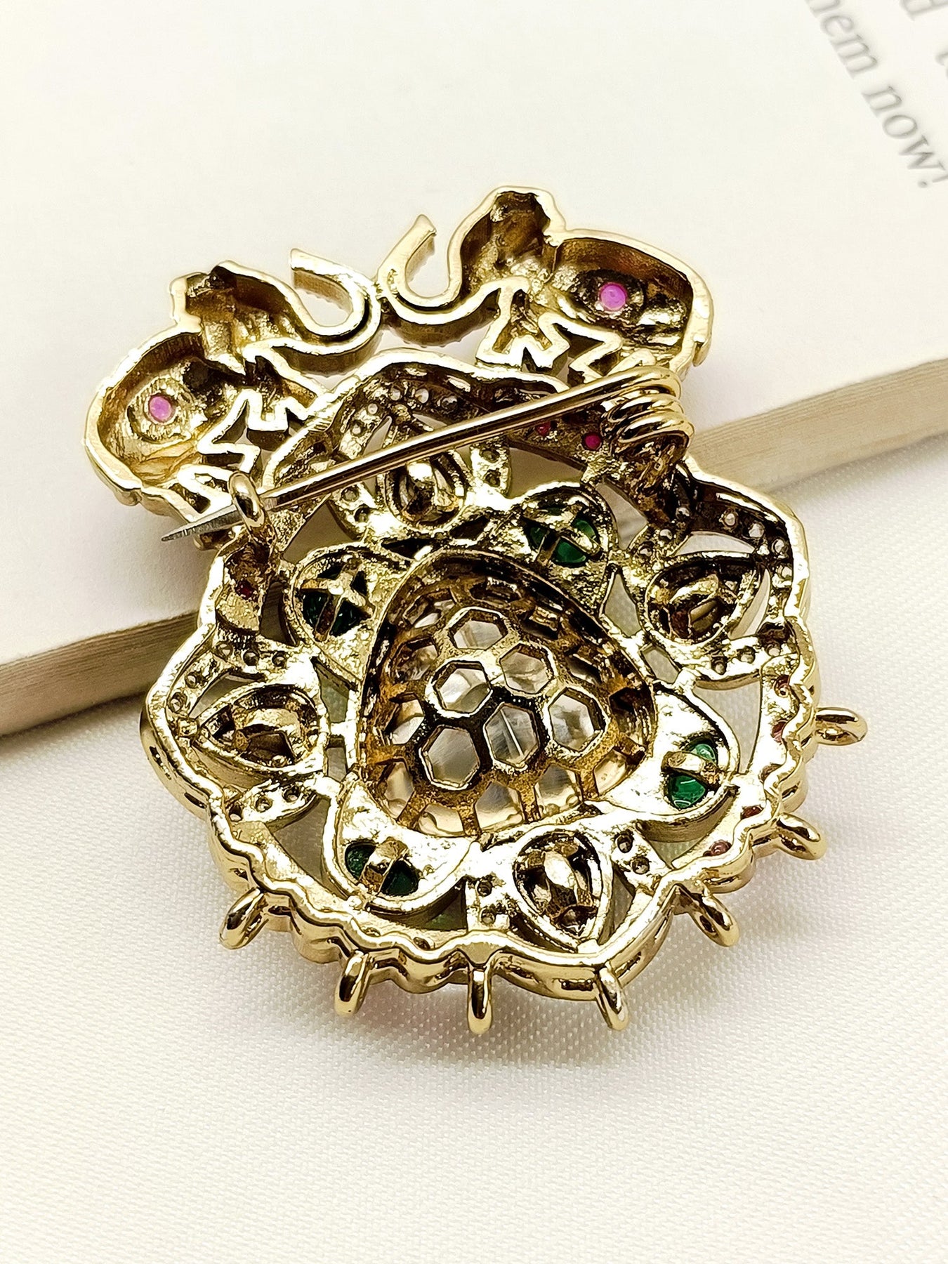 This R&G Men's Brooch Features An Elegant Antique Gold Plating, Accented By Sparkling American Diamonds And A Semi-precious Stone. Perfect For Adding A Touch Of Sophistication And Style To Any Outfit. Elevate Your Ensemble With This Classic And Timeless Accessory.
