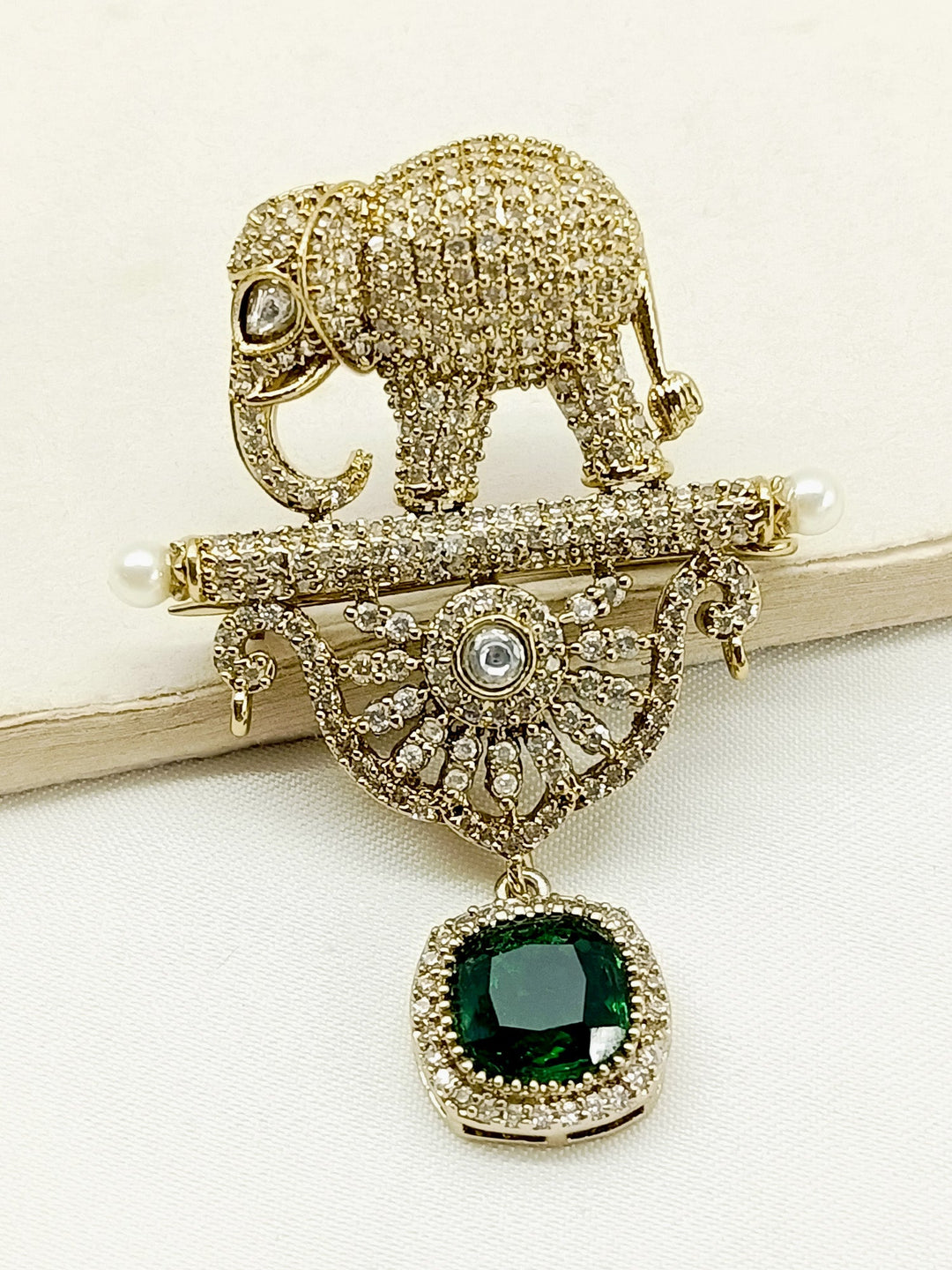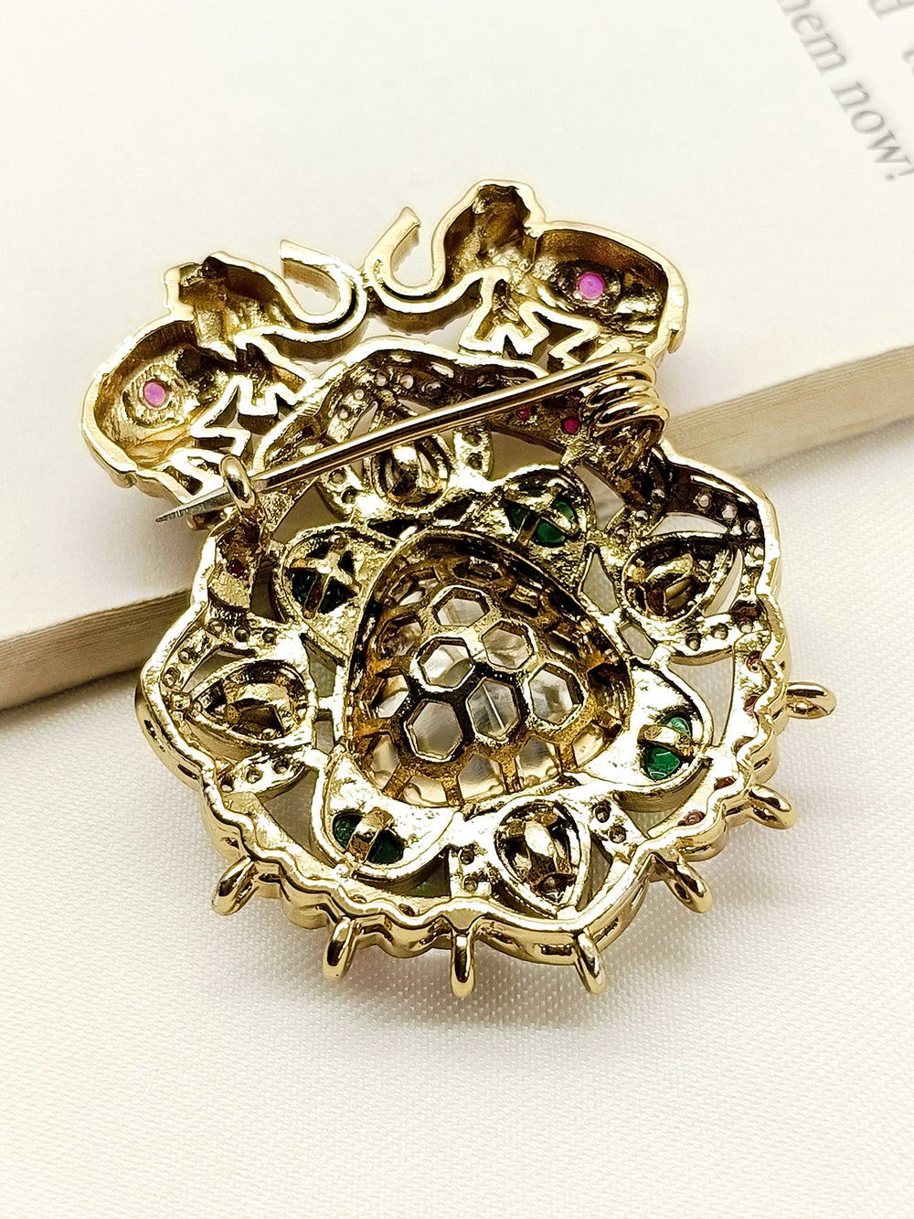 Shravan Green Elephant Brooch