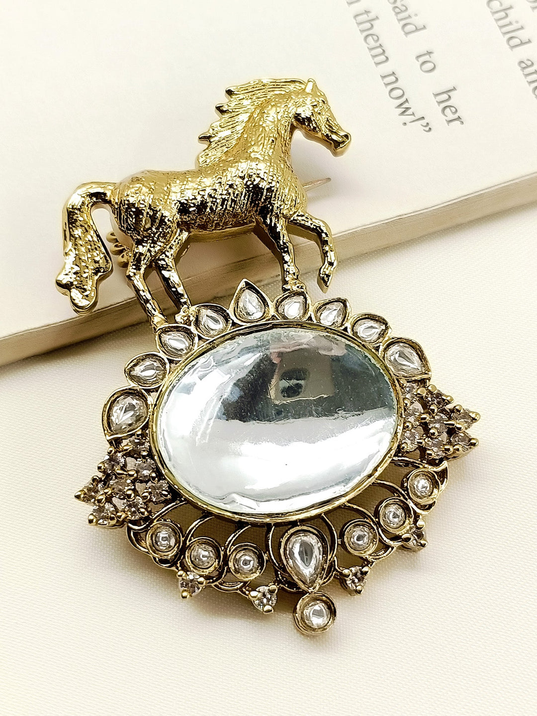 Atharva White Horse Brooch
