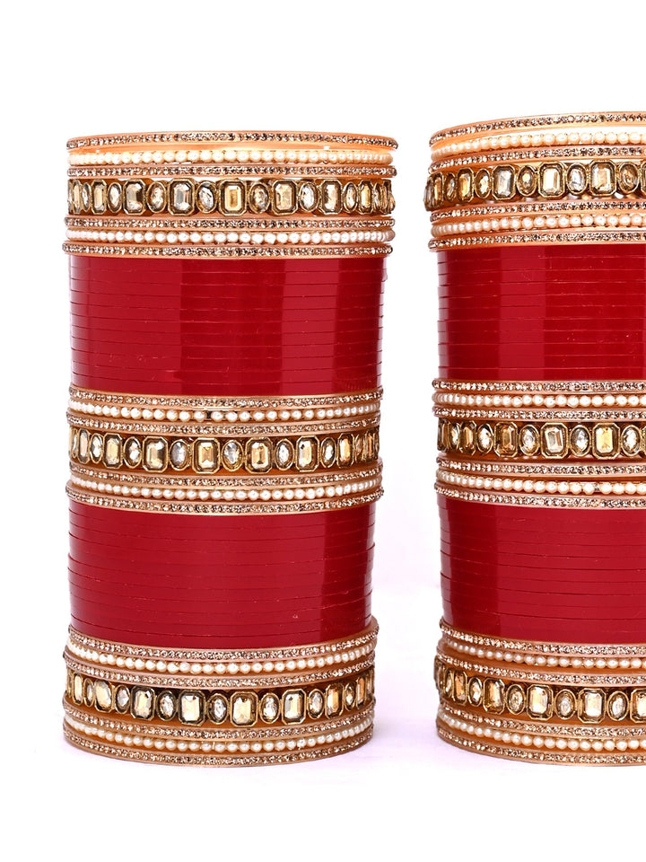 Beautiful Chura With Copper Reverse Ad Stone,also Known As Polki Bangles With Delicate Pearl Bangles