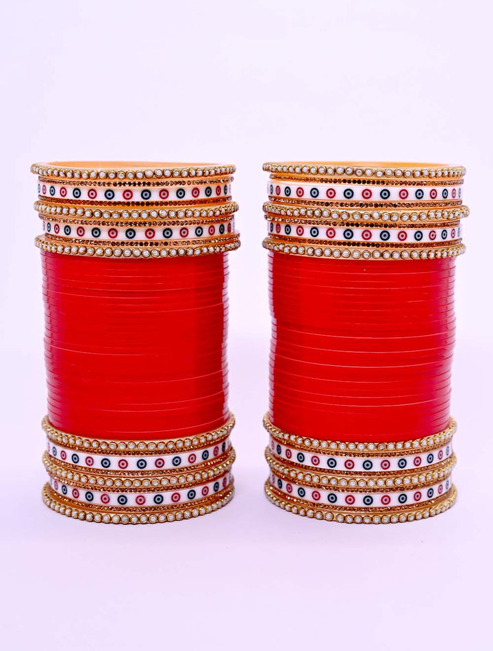 Lavanya Traditional Red Chura With Pearl Bangles And White Meenakari Bangle
