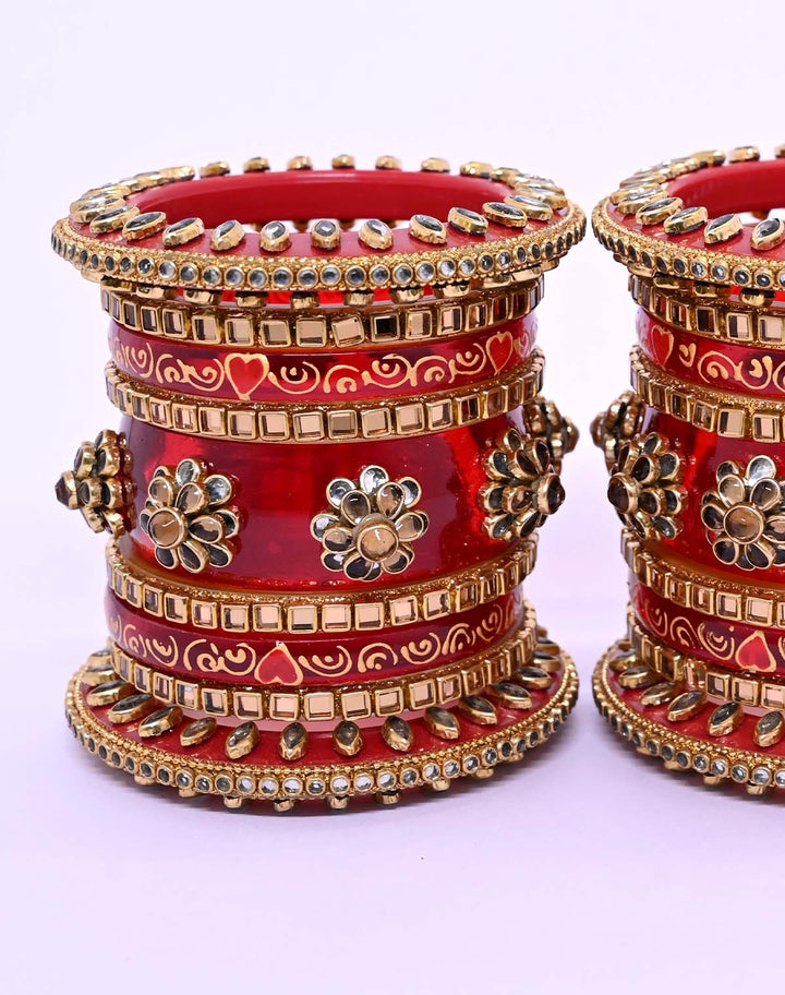 Malti Maroon Plastic Kada's With Kundan And Stone Work Punjabi Chura