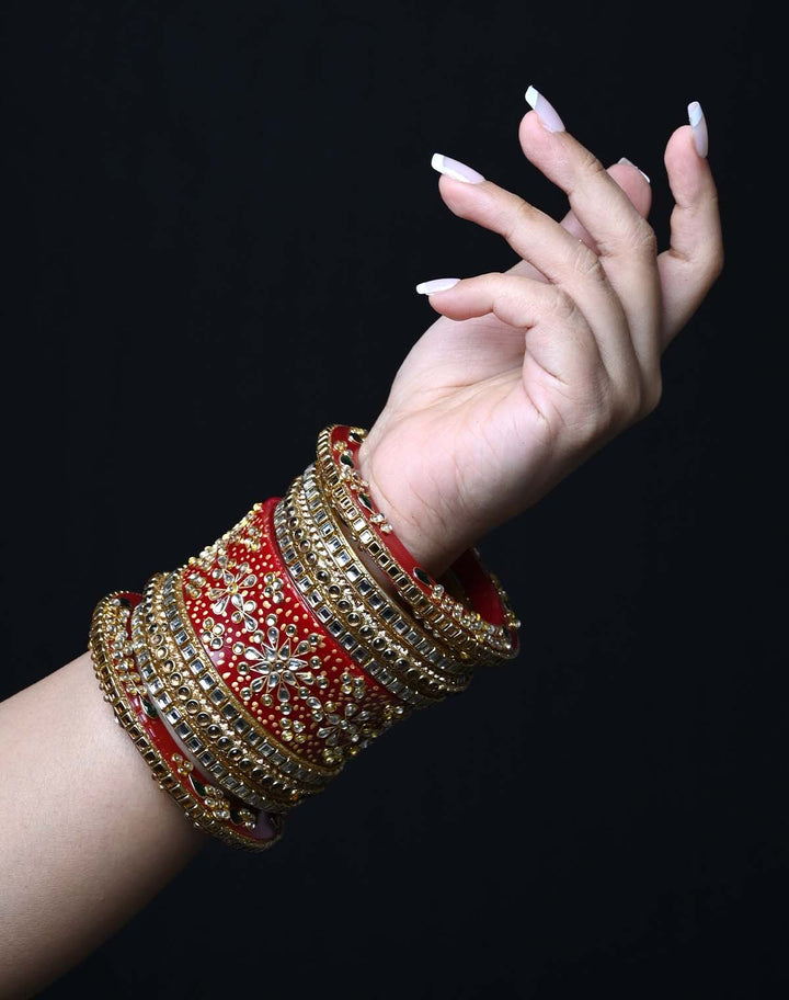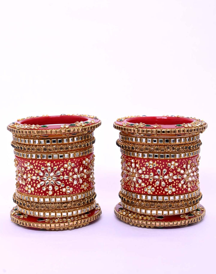 Mandakini Red Kada's With Fine Kundan And Stone Work Punjabi Chura