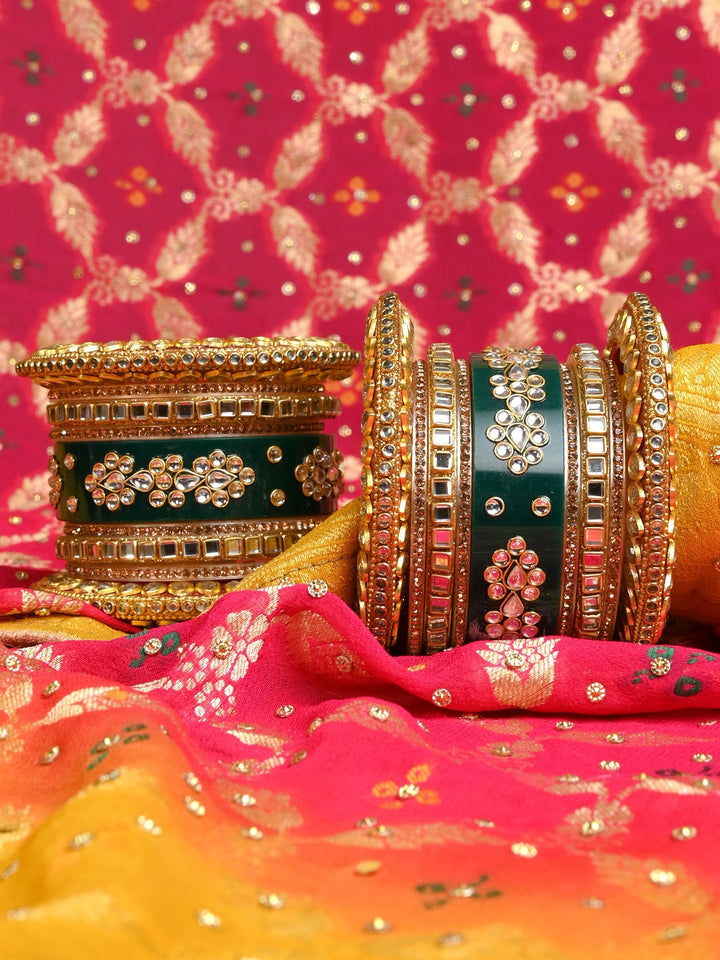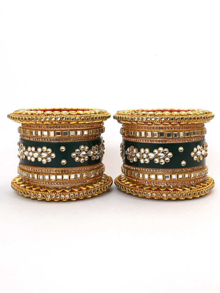 Add A Touch Of Elegance To Your Traditional Attire With The Kundan Work Punjabi Chura. Adorned With Stunning Kundan Work And Heavy Bangles On The Sides, This Acrylic Set Will Elevate Your Look. With Its Intricate Design And Quality Craftsmanship, It's A Must-have For Any Special Occasion.