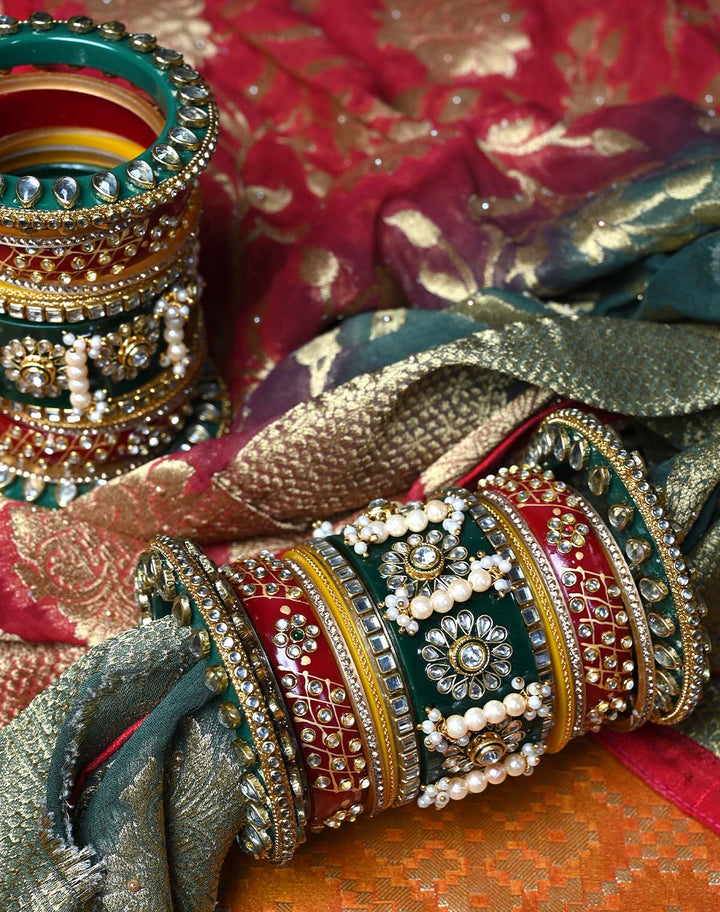 Rajeshwari Maroon & Green Kada With Kundan Work Rajputi Chura
