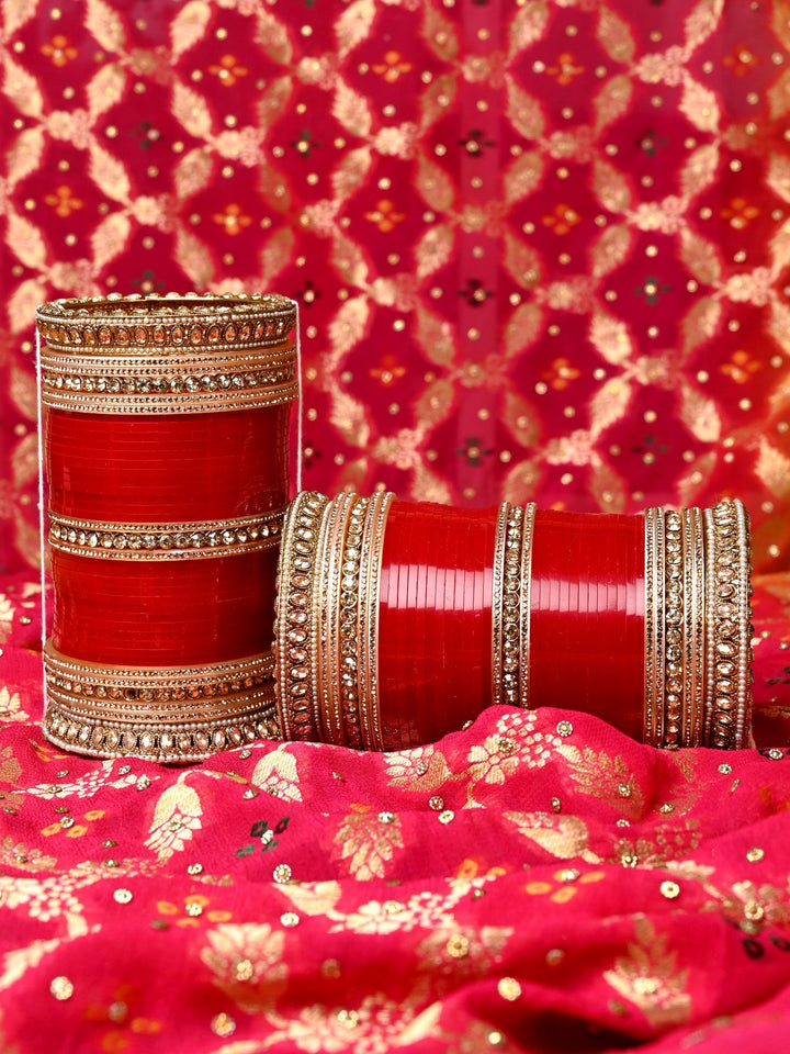Beautiful Chuda With Copper Stone And Pearl Kada's With Maroon Colour Bangles Chura Set - Maroon Bangles Of Good Quality Plastic