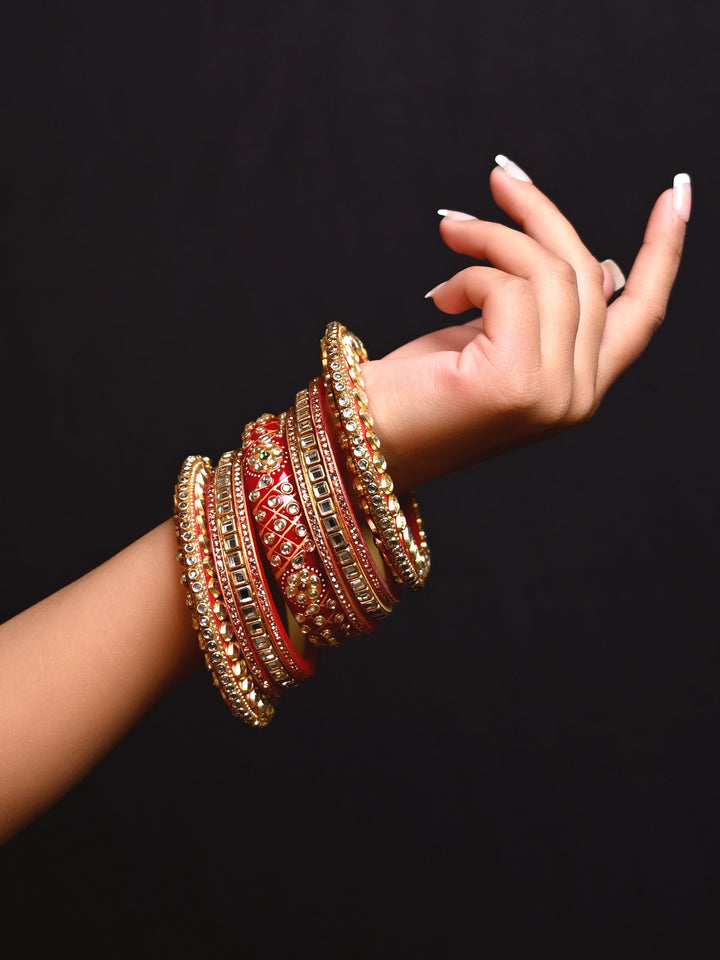 This Finely Crafted Chura Is Beautifully Studded With Kundan Stones And Meenakari Work  It's Plastic Based With Stone Studded Bangles