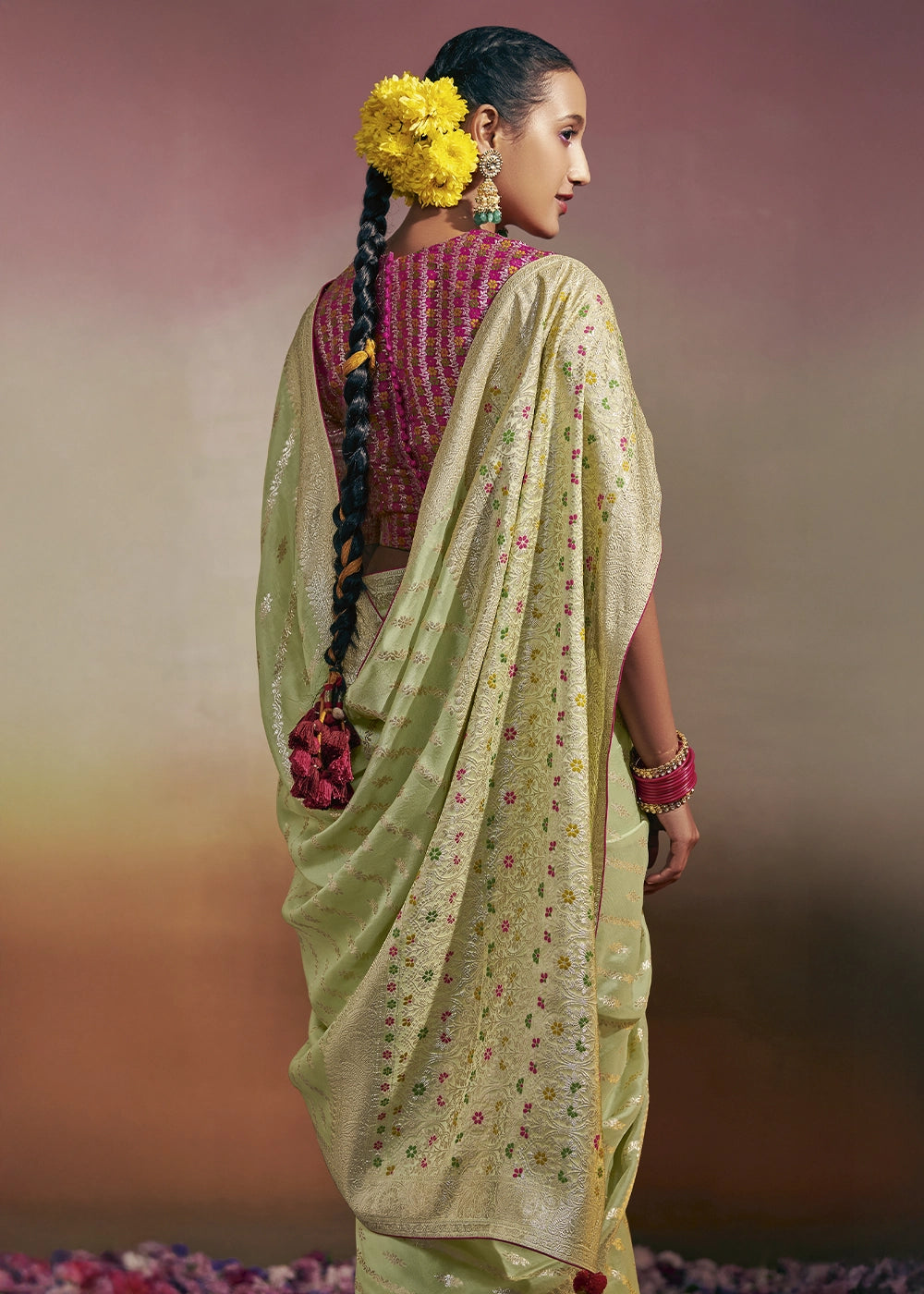 Pear Green Zari Woven Dola Silk Saree with Embroidery Detailing