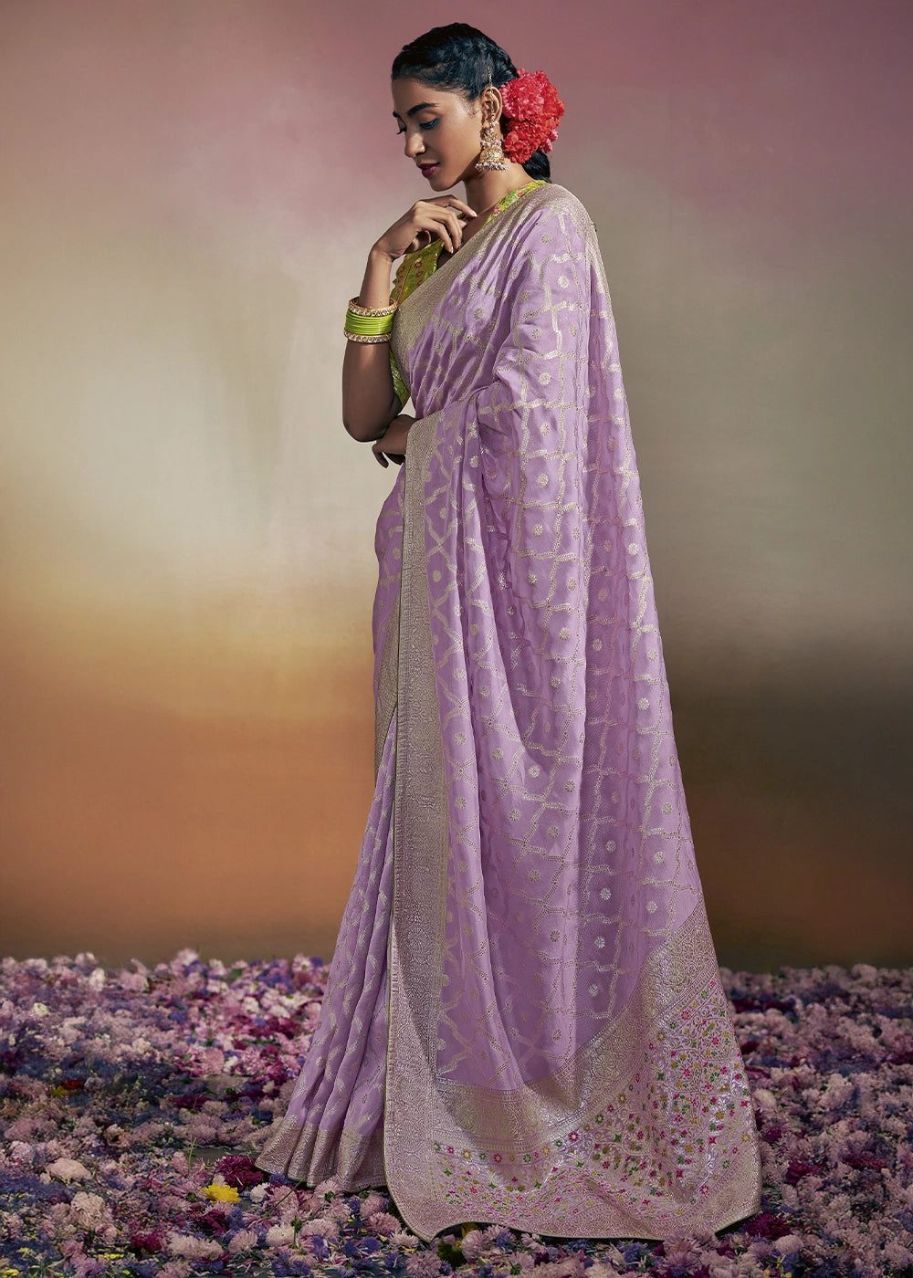Lavender Purple Zari Woven Dola Silk Saree with Meenakari Pallu