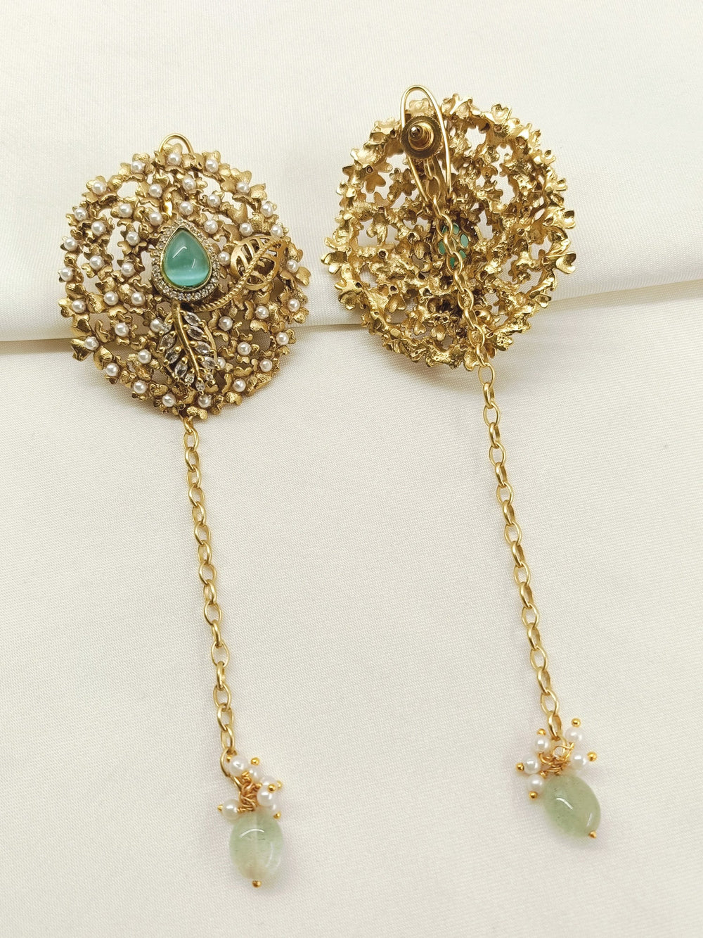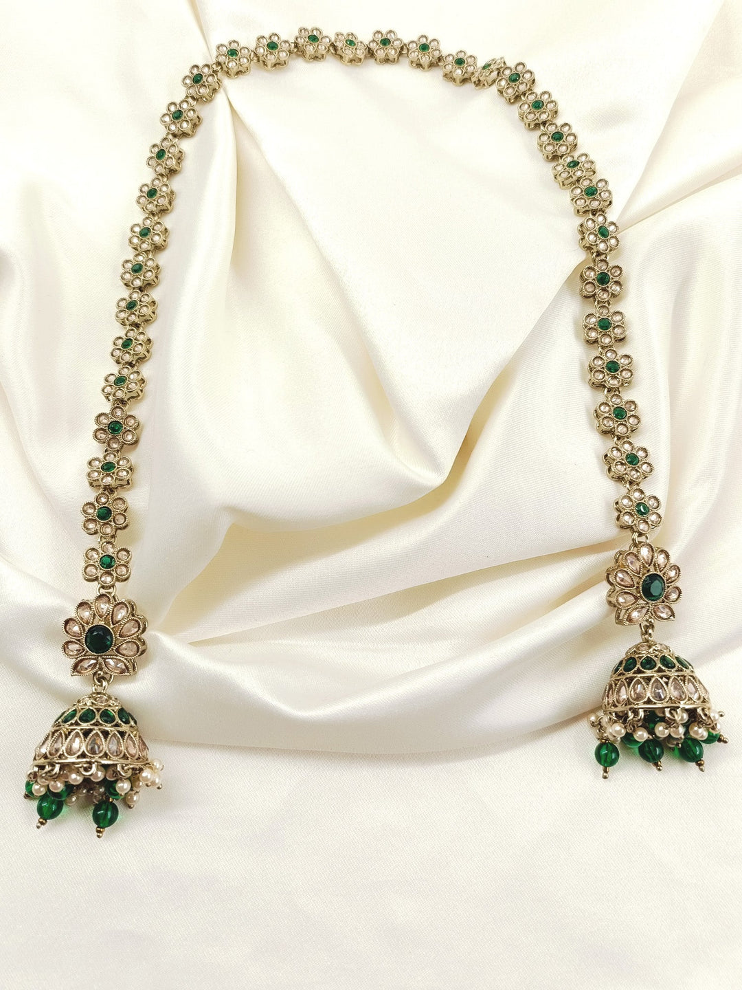 Madhuri Green Polki Jhumki With Sheeshpatti