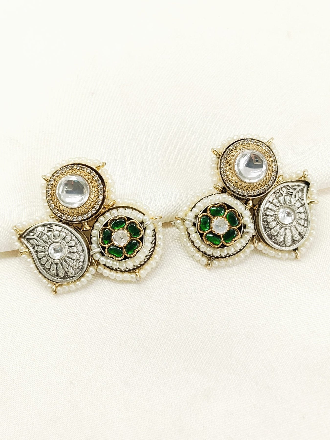 Elevate Your Style With These Green Boutique Tops Crafted From Gold And Silver-plated Brass Metal. Adorned With Lustrous Pearls, Sparkling American Diamonds, And Natural Stones, They Offer A Refined Blend Of Elegance And Durability. Perfect For Adding A Sophisticated Touch To Any Outfit, These Tops Showcase Expert Craftsmanship And Premium Materials.