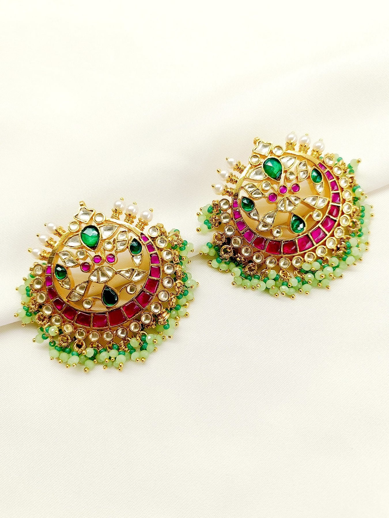These Kundan Tops Embody The Perfect Blend Of Tradition And Modernity. Crafted With A Stunning Traditional Design And Enhanced With Beads, These Tops Are A True Work Of Art. While The Gold Polish Brass Metal Adds A Touch Of Luxury. Elevate Your Style With These Exquisite Tops.