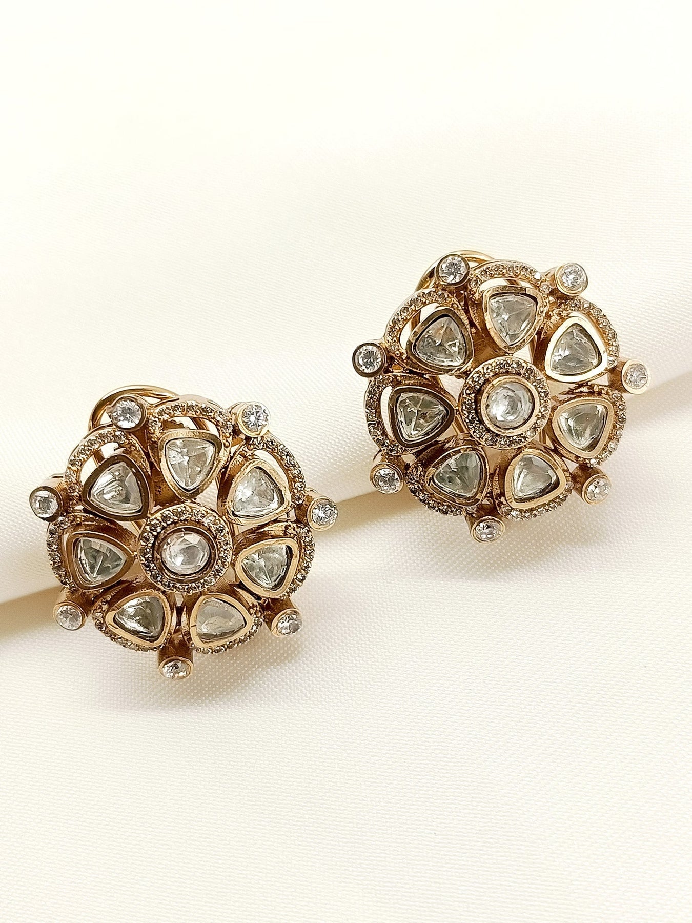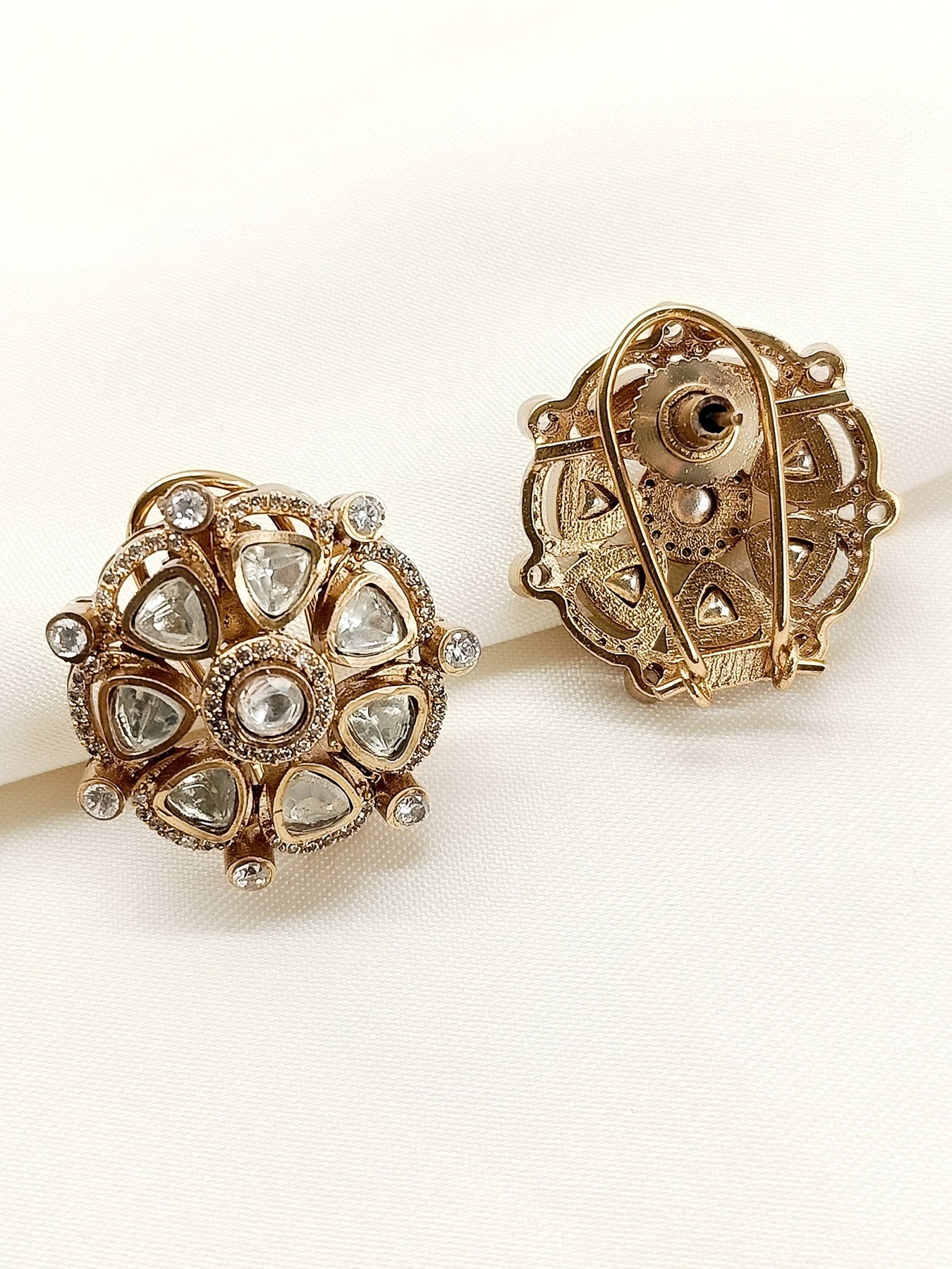 These White Kundan Tops Embody The Perfect Blend Of Tradition And Modernity. Crafted With A Stunning Traditional Kundan Design And Enhanced With American Diamonds, These Tops Are A True Work Of Art. The Back Clip-on Feature Ensures A Secure And Comfortable Fit, While The Gold Plated Brass Metal Adds A Touch Of Luxury. Elevate Your Style With These Exquisite Tops.
