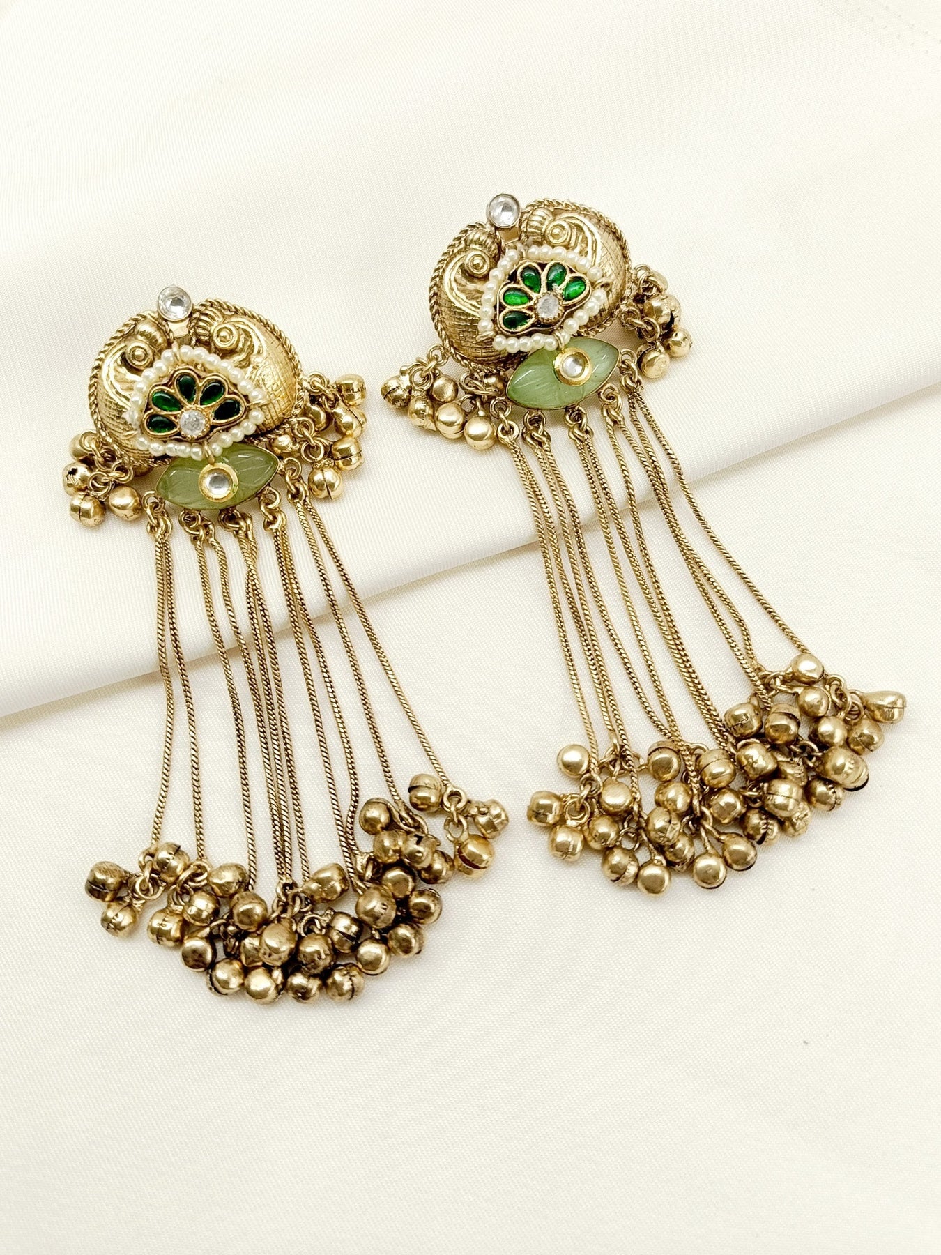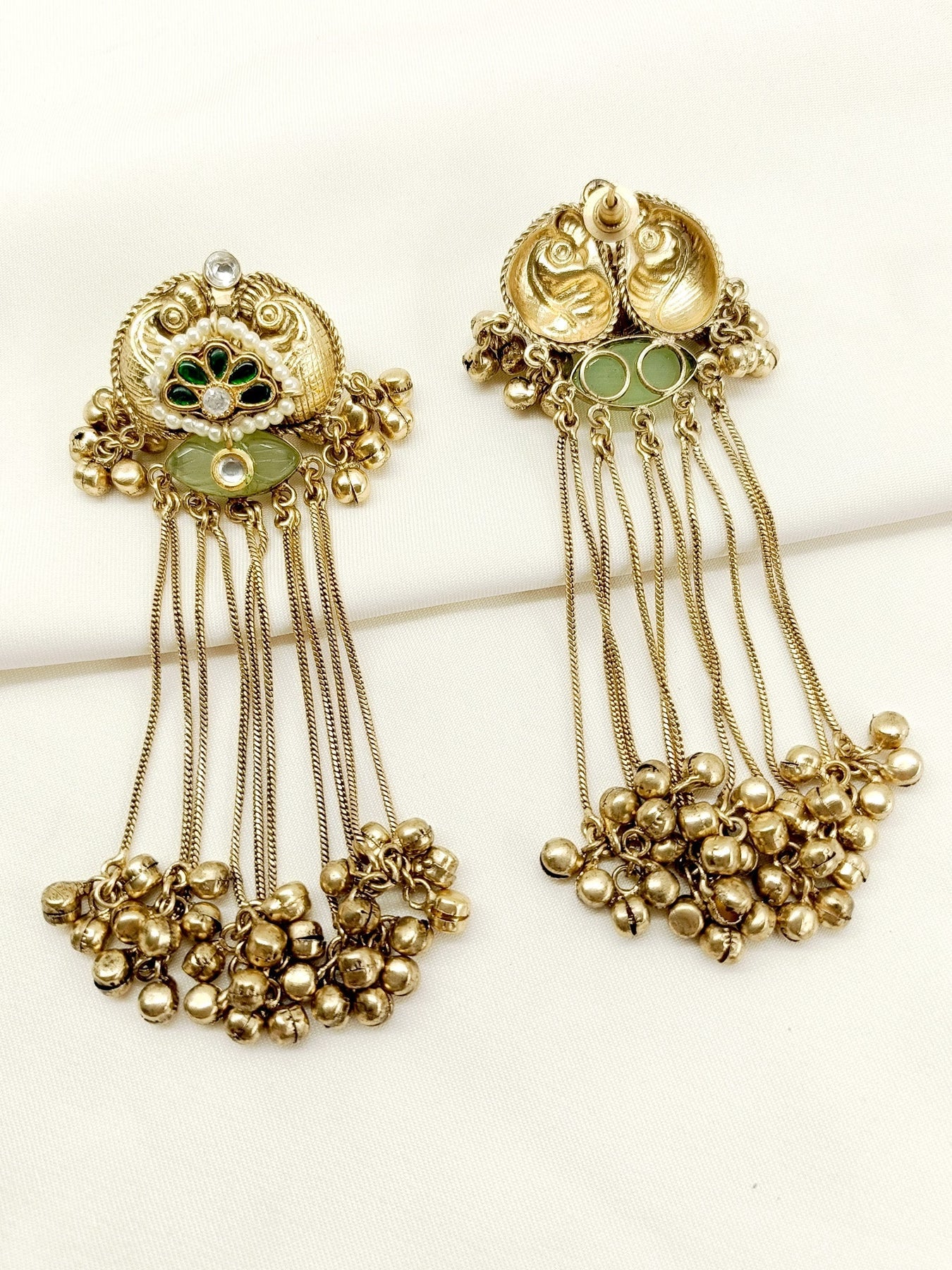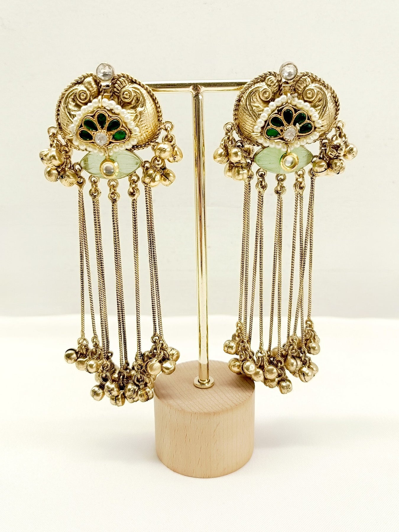 These Traditional Boutique Earrings Feature Antique Gold Plating And Are Made With Pearls And Semi-precious Stones. Add A Touch Of Elegance To Your Outfit With These Unique Accessories. Crafted From Brass Metal, These Earrings Are Perfect For Any Occasion.
