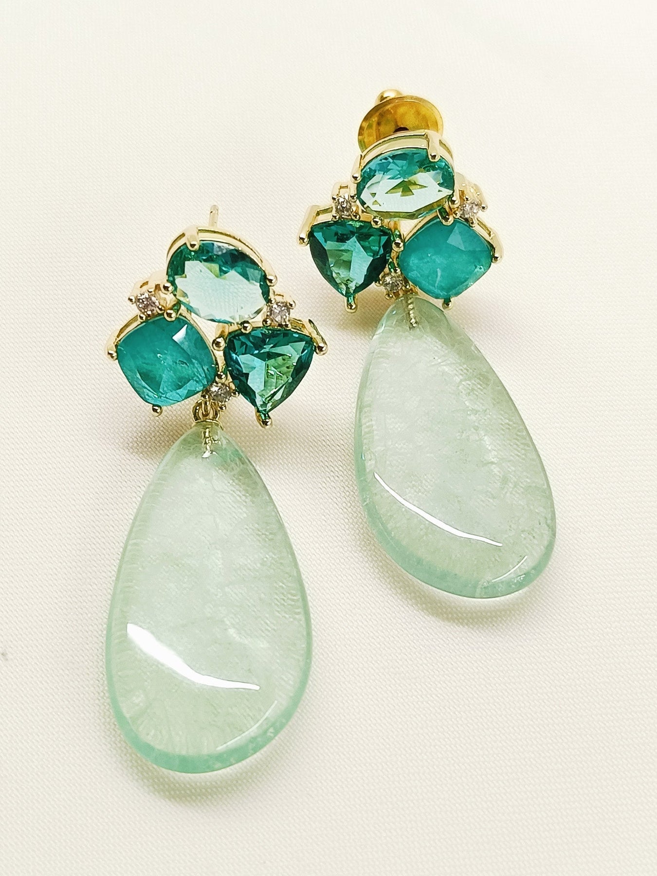 Elevate Your Elegance With These Mint Green American Diamond Earrings, Crafted From 22K Gold-plated Brass For Lasting Shine And Durability. Featuring Meticulously Set American Diamonds, Natural Stones, And Delicate Beads, They Offer A Refined Sparkle And Vibrant Color Contrast. Perfect For Adding A Sophisticated Touch To Both Traditional And Contemporary Ensembles.