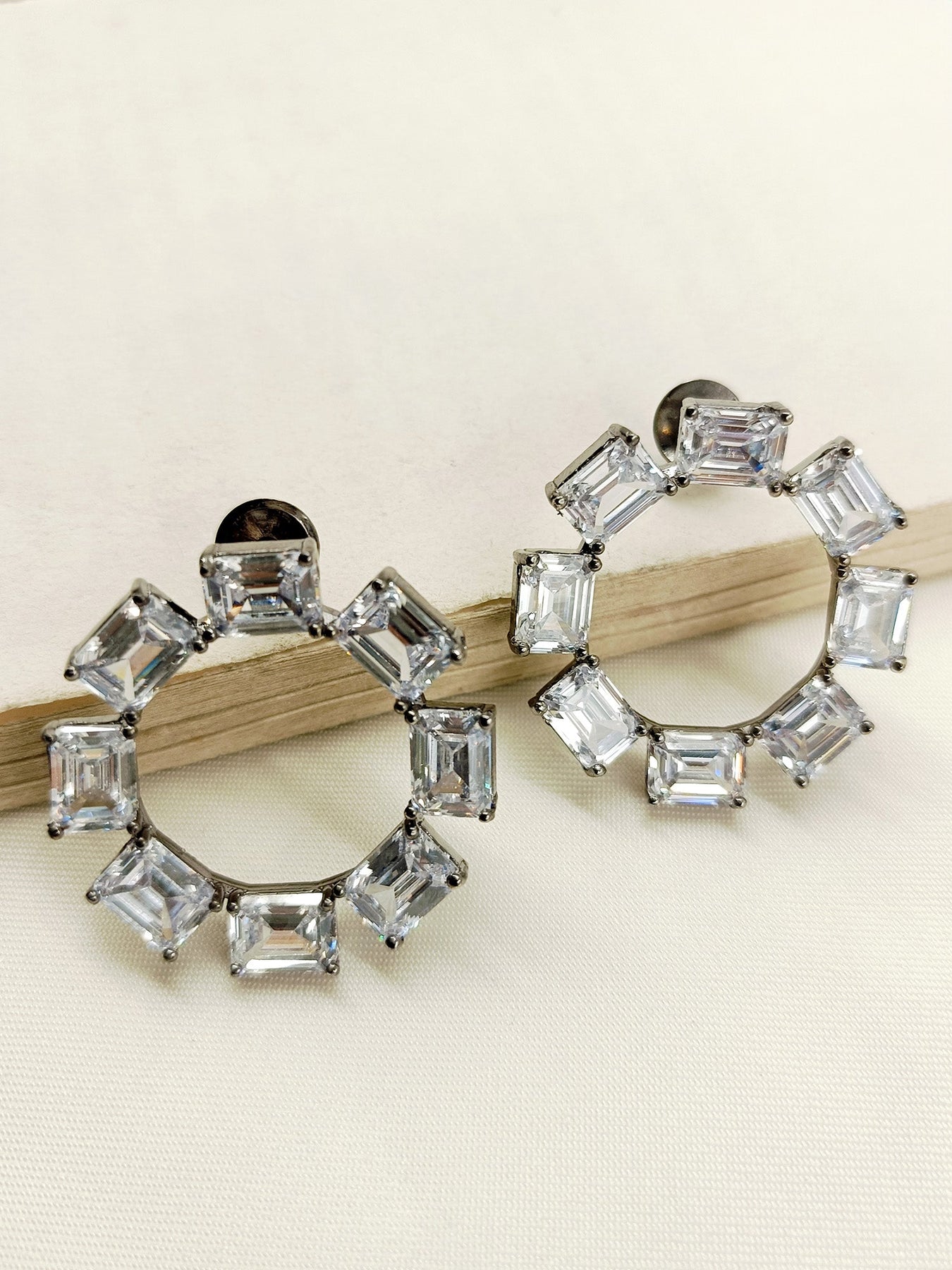 This Tops Feature Elegant And Black Polish Brass Metal And Genuine American Diamonds For A Look That Sparkles. The Perfect Addition To Any Style, This Earrings Flaunt A Timeless And Sophisticated Design That Will Surely Turn Heads.