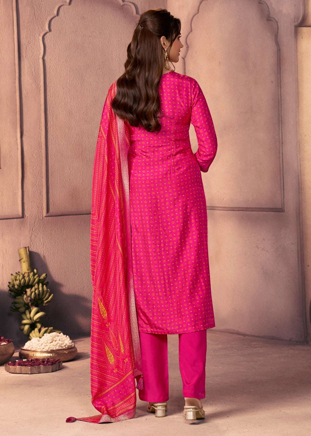 Shades Of Pink Silk Suit with Ethnic Motifs & Embroidered Neckline