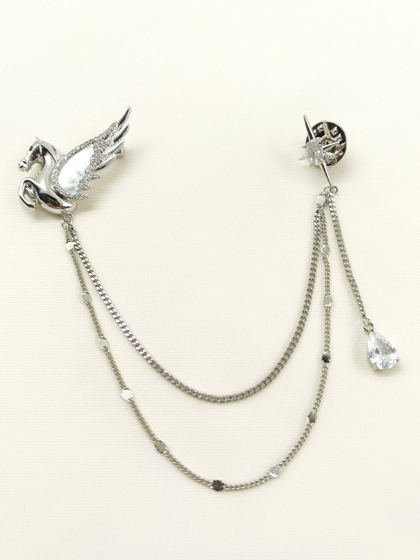 Aditi Silver Pegasus & Star Brooch Pin With Chain