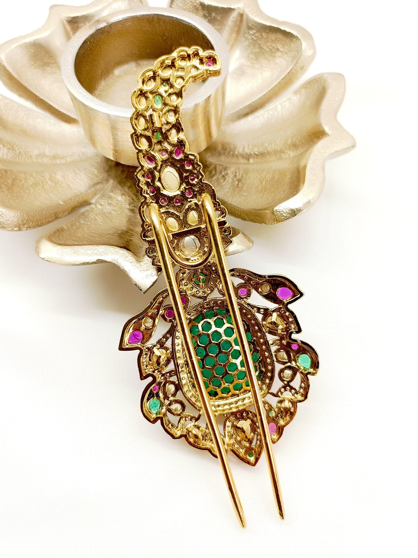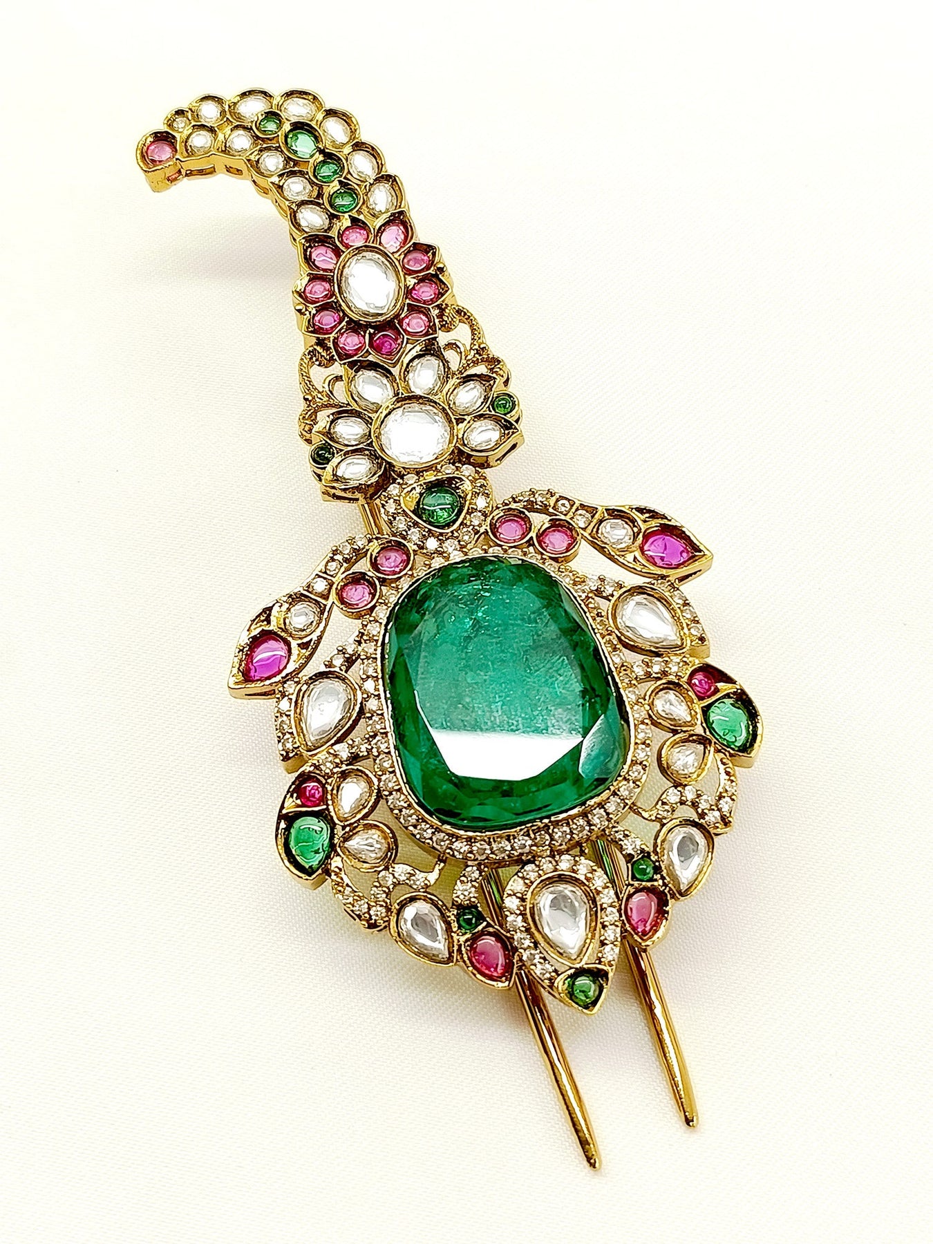Enhance Your Wedding Attire With Our Kundan Dulha Kalgi. Made With Gold Plated Brass Metal And Exquisite Kundan Work, It Features A Stunning American Diamond Setting And Elegant Pearl Hanging. Elevate Your Look With This Traditional And Timeless Accessory.
