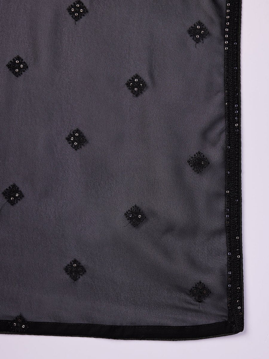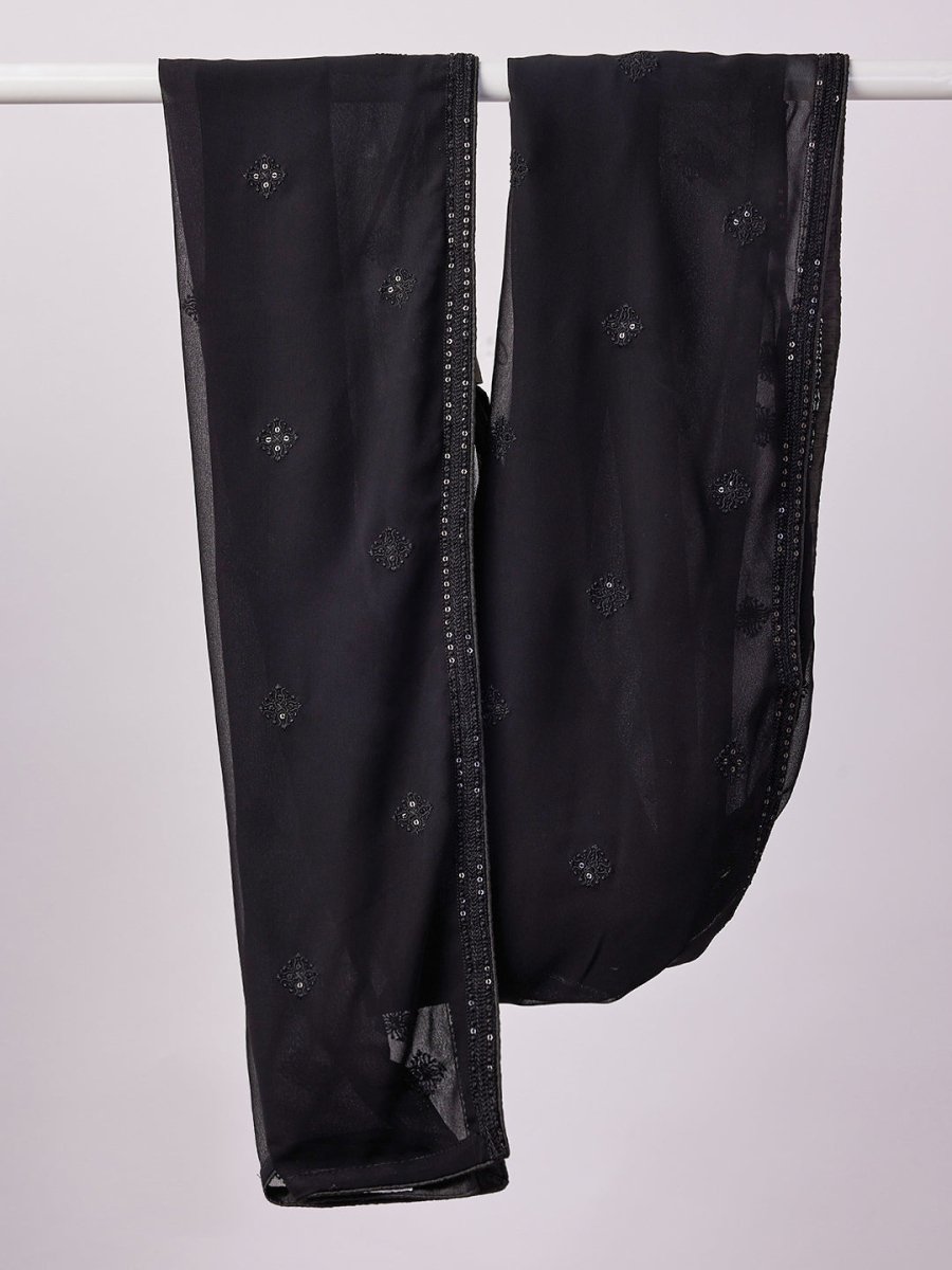 The black dupatta adorned with delicate sequin embroidery along the border, adding a touch of understated glamour.Perfect for weddings, festive celebrations, or evening cultural events.