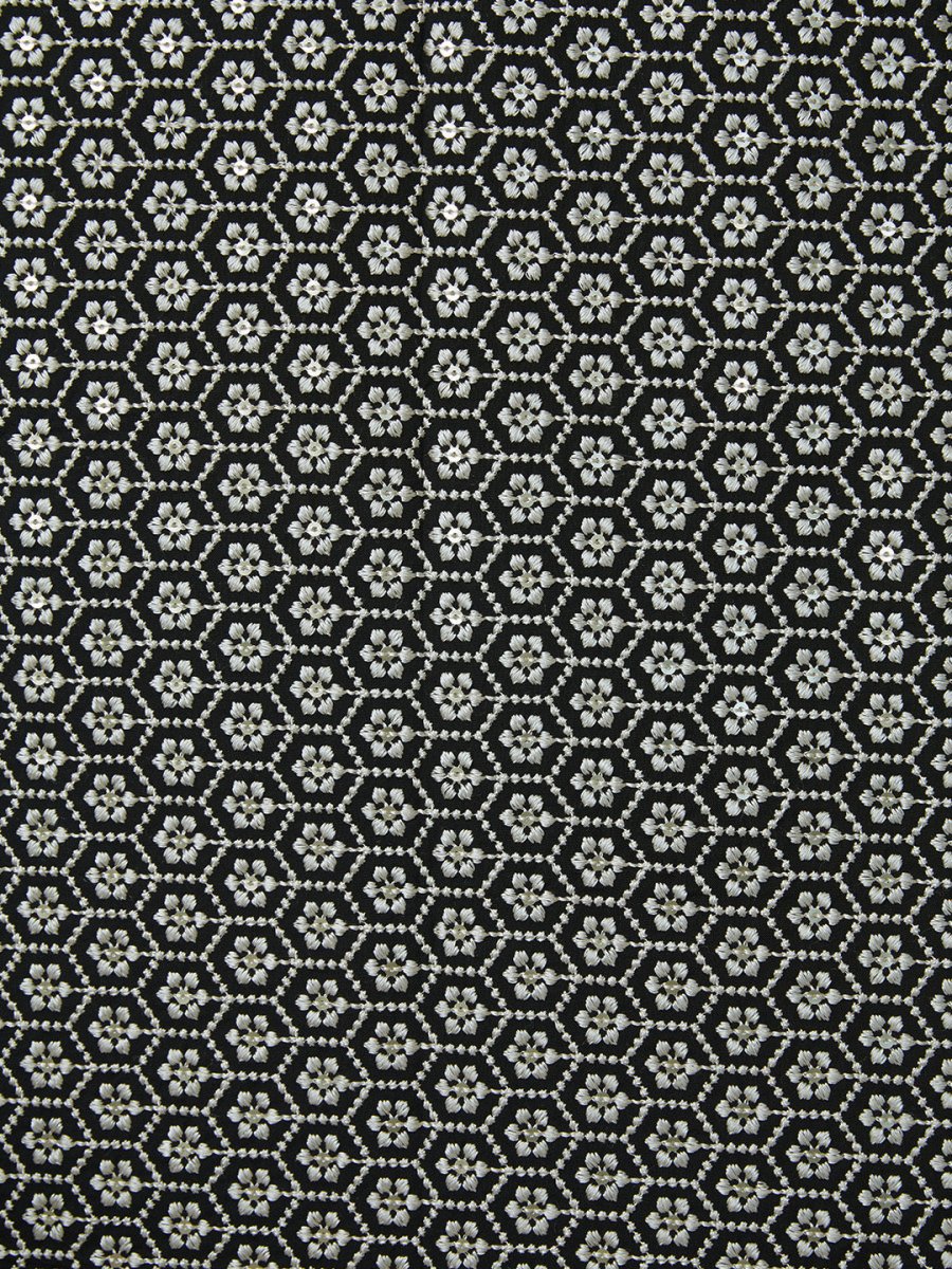 A sophisticated black embroidered sequined dupatta for men, featuring an intricate geometric pattern and a shimmering gold border, perfect for enhancing traditional attire.