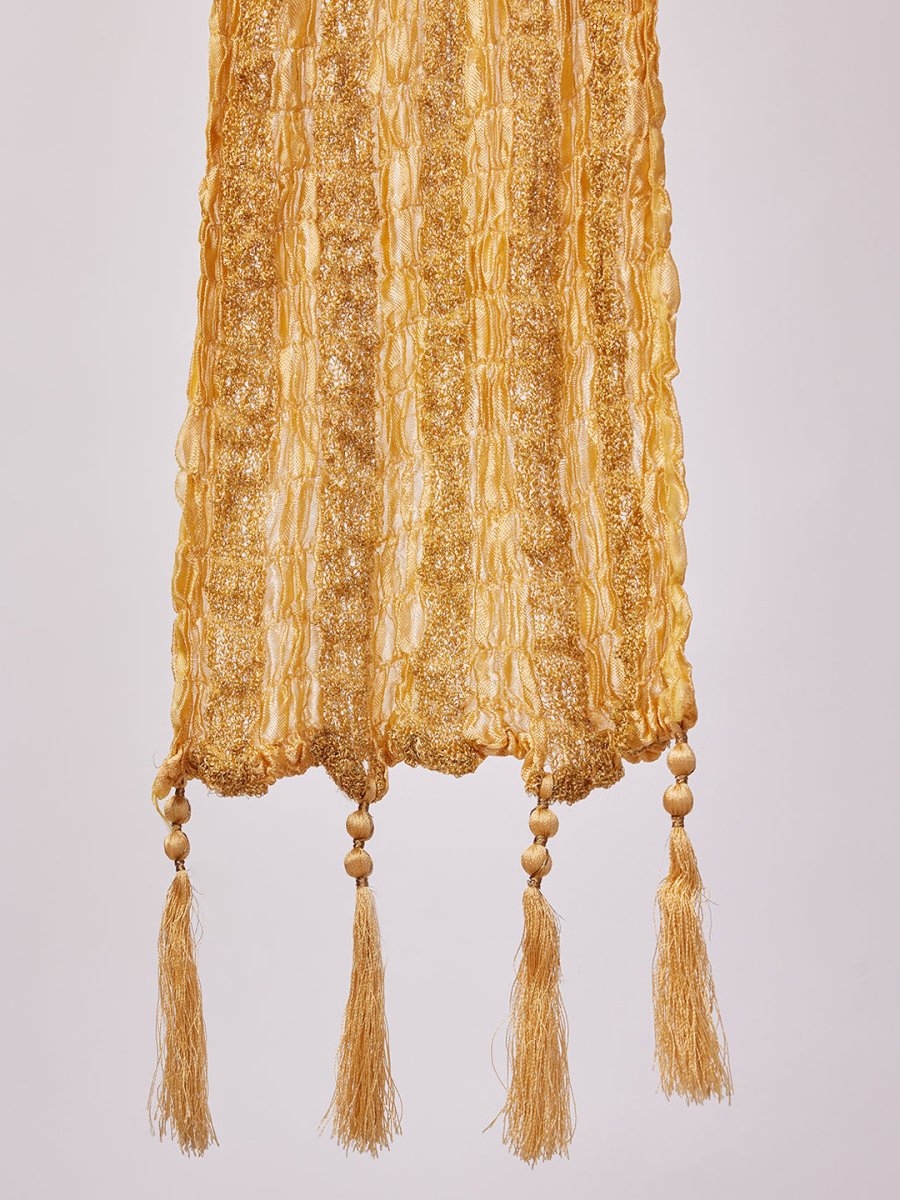 The dupatta is crafted in a soft, lightweight fabric with a crinkled texture, adding depth and dimension to the look. The dupatta is finished with stylish tassels on both ends, adding a festive and celebratory appeal.This dupatta is perfect for weddings, festive occasions, and cultural events, effortlessly elevating any traditional ensemble with its refined elegance.