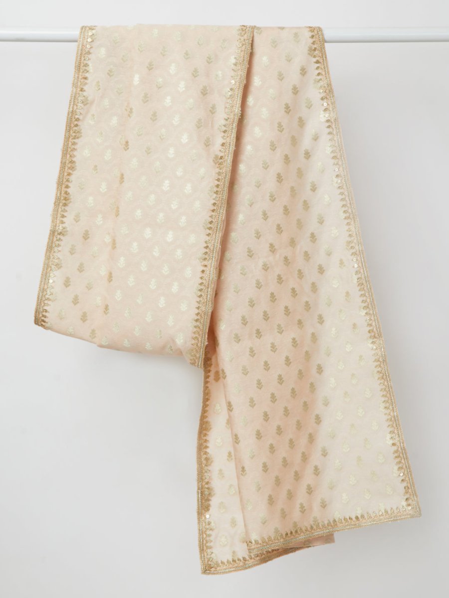 The jacquard dupatta, adorned with a delicate gold border, drapes gracefully to complete the ensemble. Styled with traditional embroidered juttis, this set is ideal for grooms, groomsmen, or anyone looking to make a striking impression at special occasions.