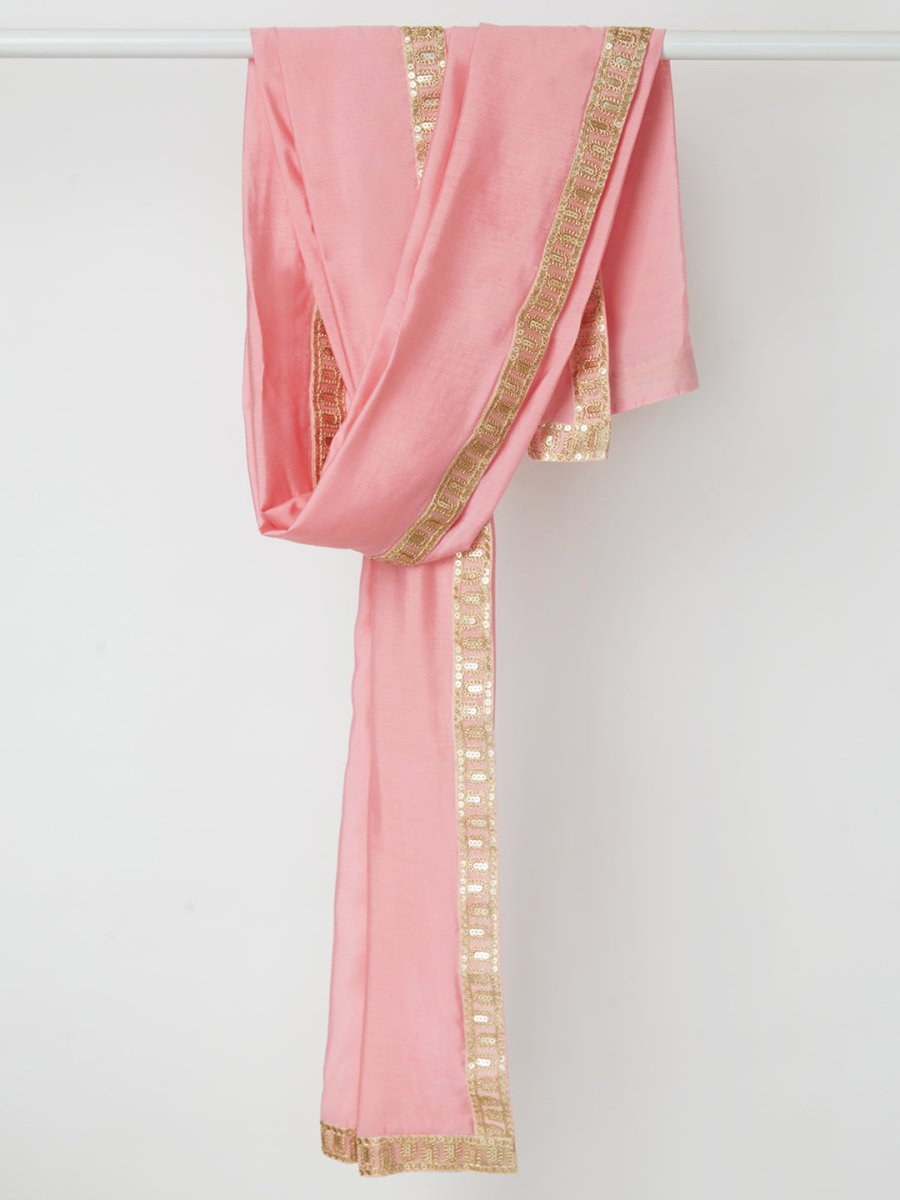 Sarvati present pink woven silk blend dupatta with embellished boder.