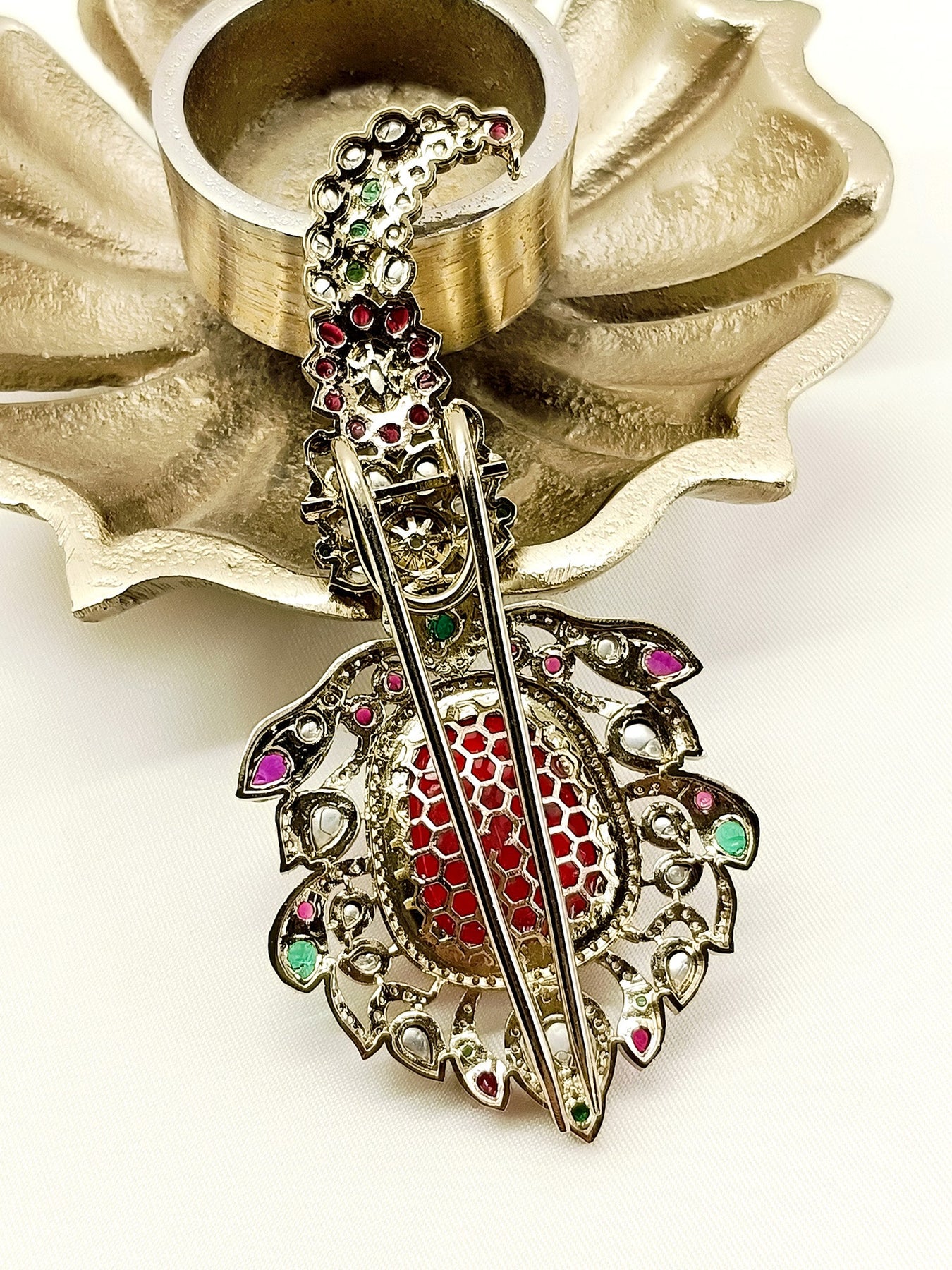 Experience The Elegance Of Our Traditional R&G Dulha Kalgi Made Of Antique Gold Plated Brass Metal, Adorned With Semi-precious Stones Such As American Diamond And Ruby Mossonite. Elevate Your Wedding Day Look With This Exquisite Accessory.
