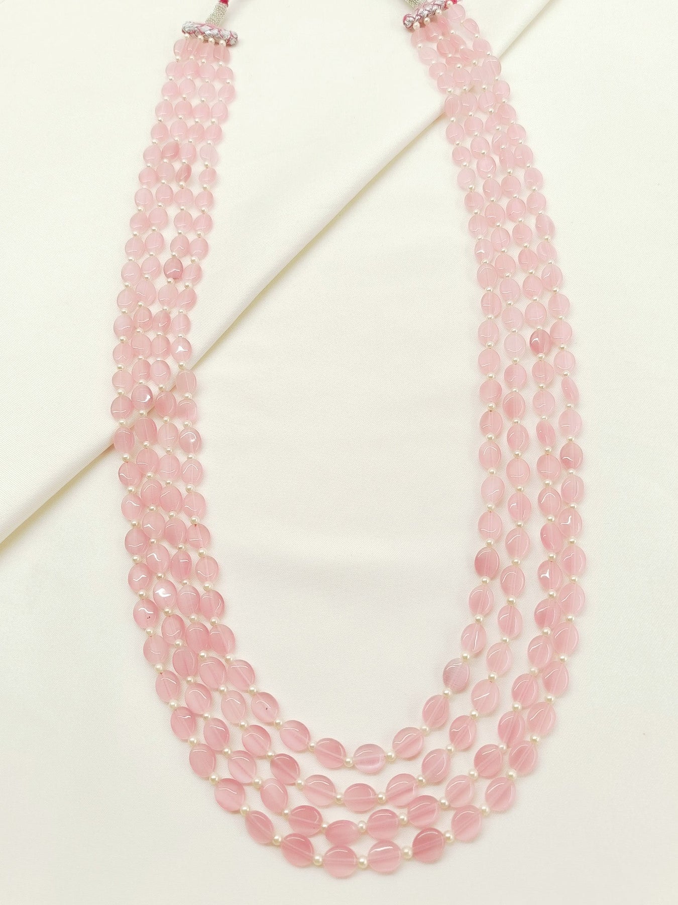 Elevate Your Jewelry Collection With This Exquisite Baby Pink Beads Neckpiece, Crafted From Semi-precious Stones In Soft, Romantic Hues. Each Bead Is Carefully Selected And Strung To Create A Versatile Accessory That Complements Both Casual And Formal Wear. The Delicate Baby Pink Tones Offer A Sophisticated Alternative To Traditional Neutrals, Making This Piece An Ideal Choice For Those Seeking Understated Elegance. Perfect For Layering Or Wearing Solo, This Neckpiece Brings Refined Charm To Any Ensemble While Showcasing The Natural Beauty Of Semi-precious Materials.