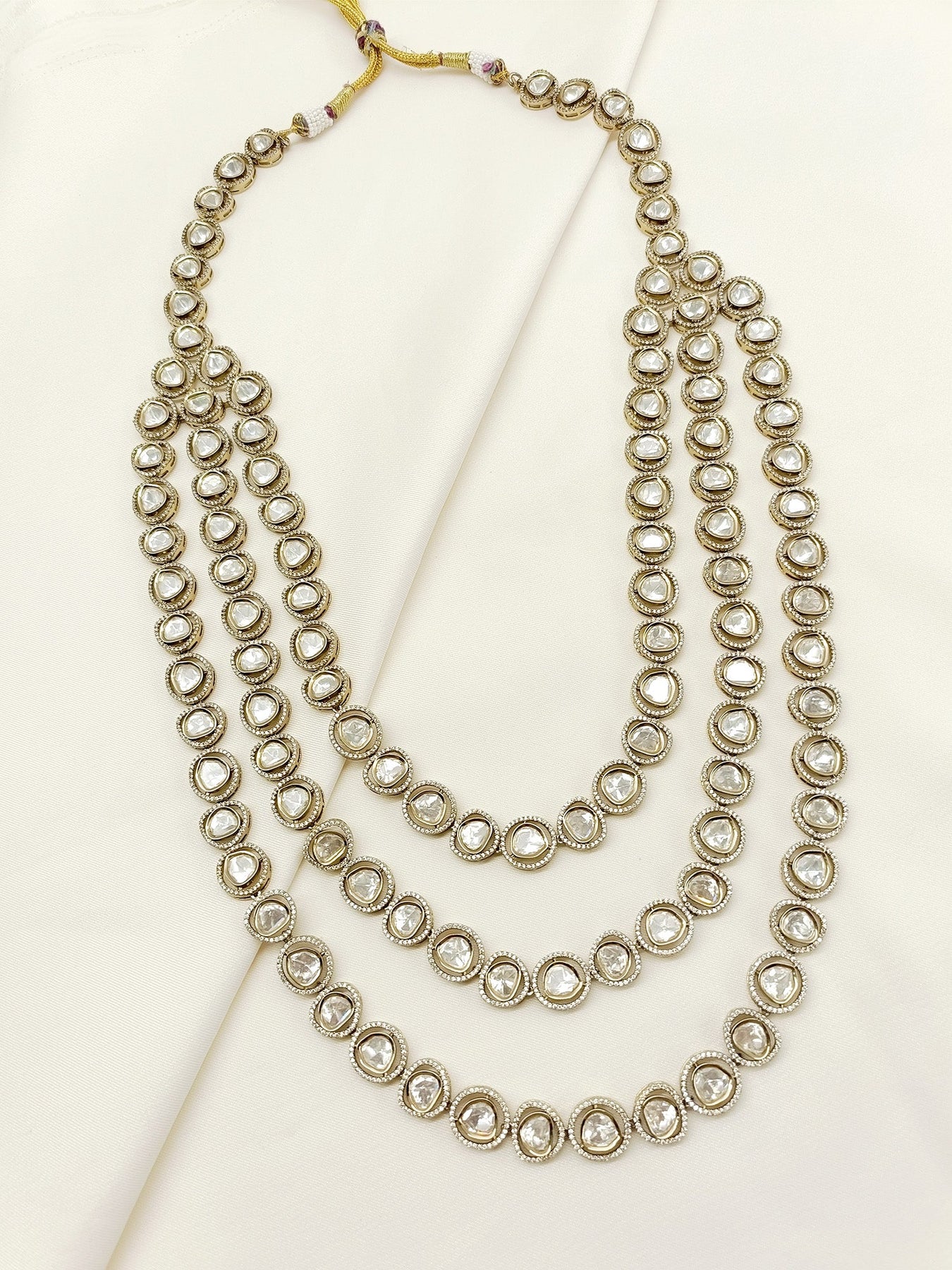 Elevate Your Style With Our White Groom Kundan Neckpiece. This Traditional Neckpiece Features Exquisite Kundan Work And Is Crafted With Antique Gold Plated Brass Metal. Adorned With Semi-precious Stones And American Diamonds, It Adds A Touch Of Elegance To Any Outfit. Expertly Designed For A Flawless Finish.