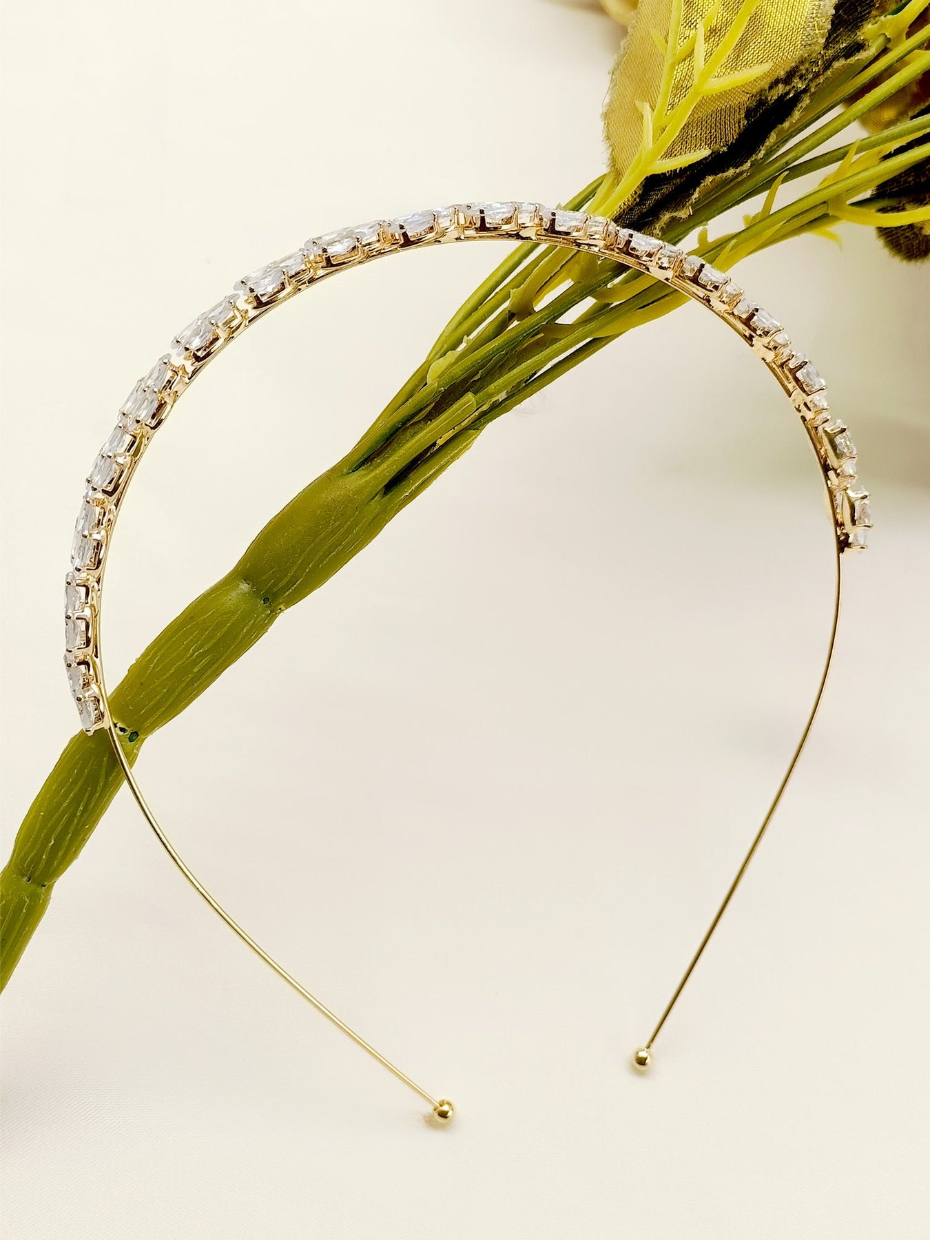This American Diamond Hair Band Is Expertly Crafted With Gold Plated Brass Metal And Adorned With Sparkling American Diamonds. Elevate Any Hairstyle With This Elegant And Versatile Hair Accessory. Perfect For Adding A Touch Of Glamour To Your Everyday Look Or Special Occasions.