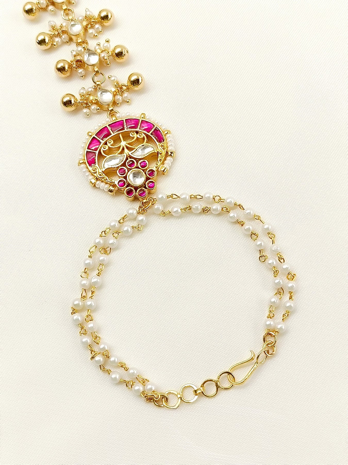 Elevate Your Traditional Jewelry Collection With Our White Kundan Hathphool Set Of 2. Crafted With Gold Plated Brass Metal, These Adjustable Kundan Hathphools Add An Elegant Touch To Any Outfit. Perfect For Special Occasions Or Everyday Wear.