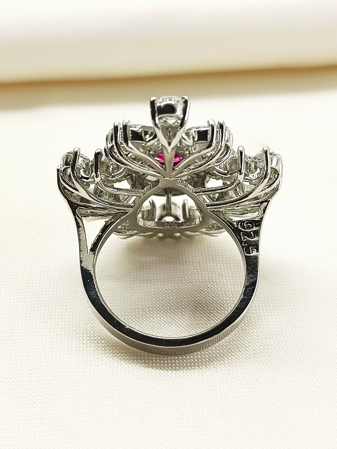 The Evita Ruby Finger Ring Combines 92.5% Pure Silver With Silver-plated Brass For Durability And Elegance. Featuring Dazzling American Diamonds Alongside A Rich Semi-precious Ruby Stone, This Expertly Crafted Piece Offers A Vibrant Touch Of Sophistication. Designed For Comfort And Lasting Shine, It Suits Both Everyday Wear And Special Occasions.