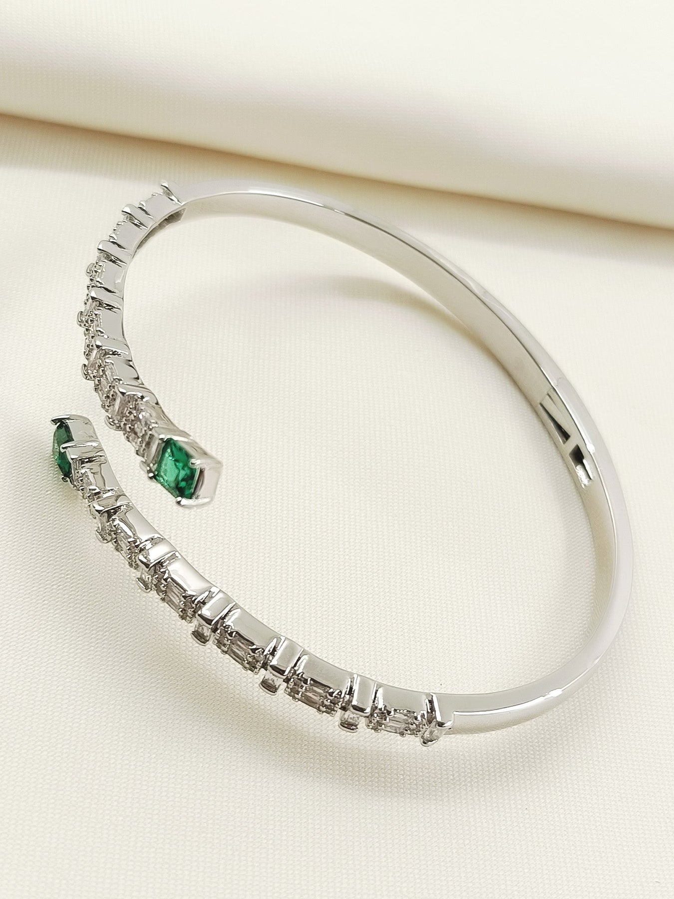 Elevate Your Wrist With This Sophisticated Green American Diamond Bracelet, Expertly Crafted From Silver-plated Brass For Lasting Brilliance. Featuring Premium American Diamonds Paired With Semi-precious Stones, This Piece Combines Timeless Elegance With Contemporary Design. The Durable Metal Construction Ensures Everyday Wearability, While The Lustrous Finish Catches Light Beautifully. Perfect For Both Casual Occasions And Special Events, This Bracelet Delivers Luxury Appeal At An Accessible Price Point. A Versatile Addition To Any Jewelry Collection.