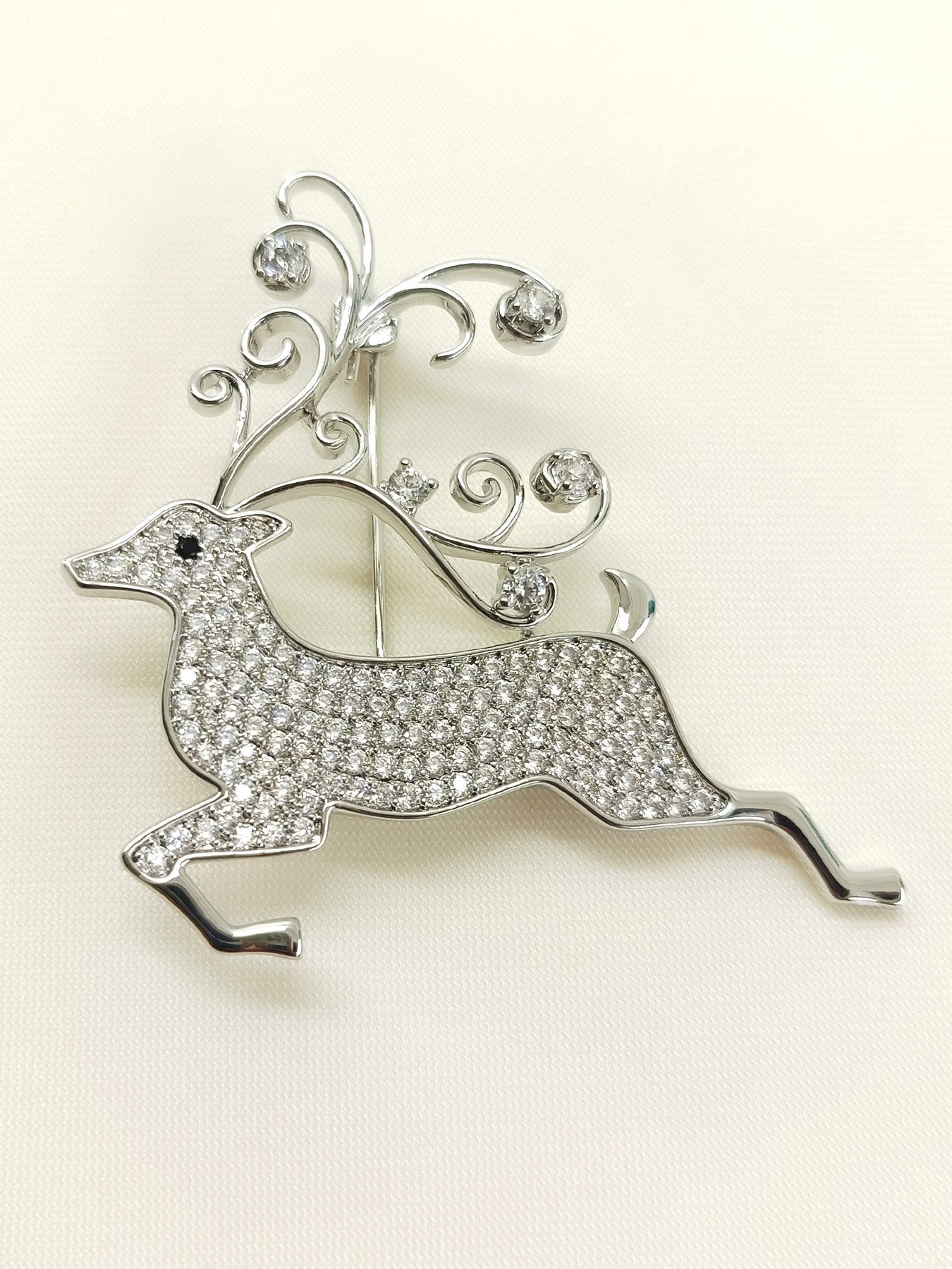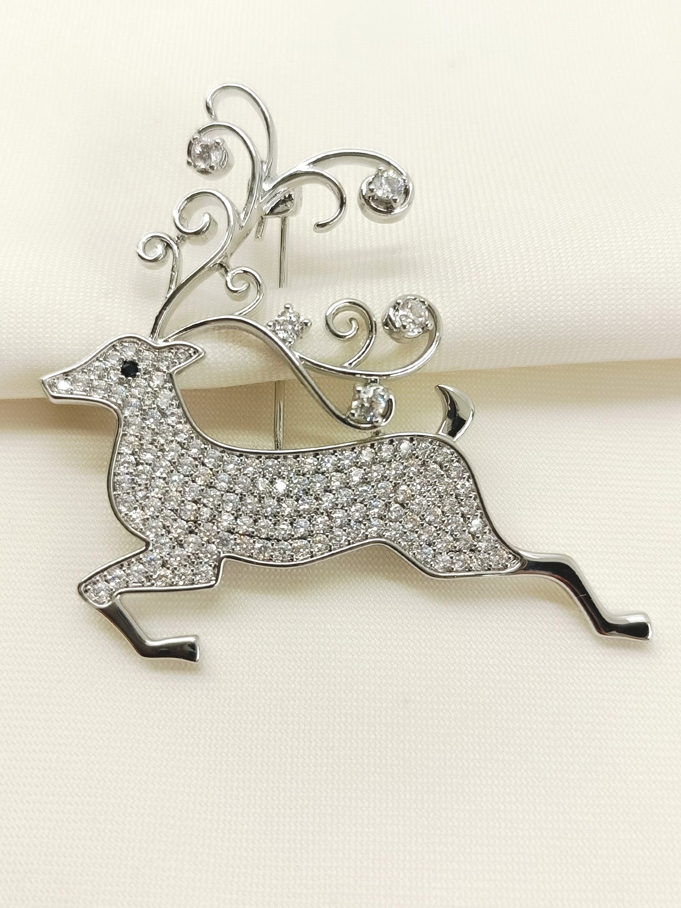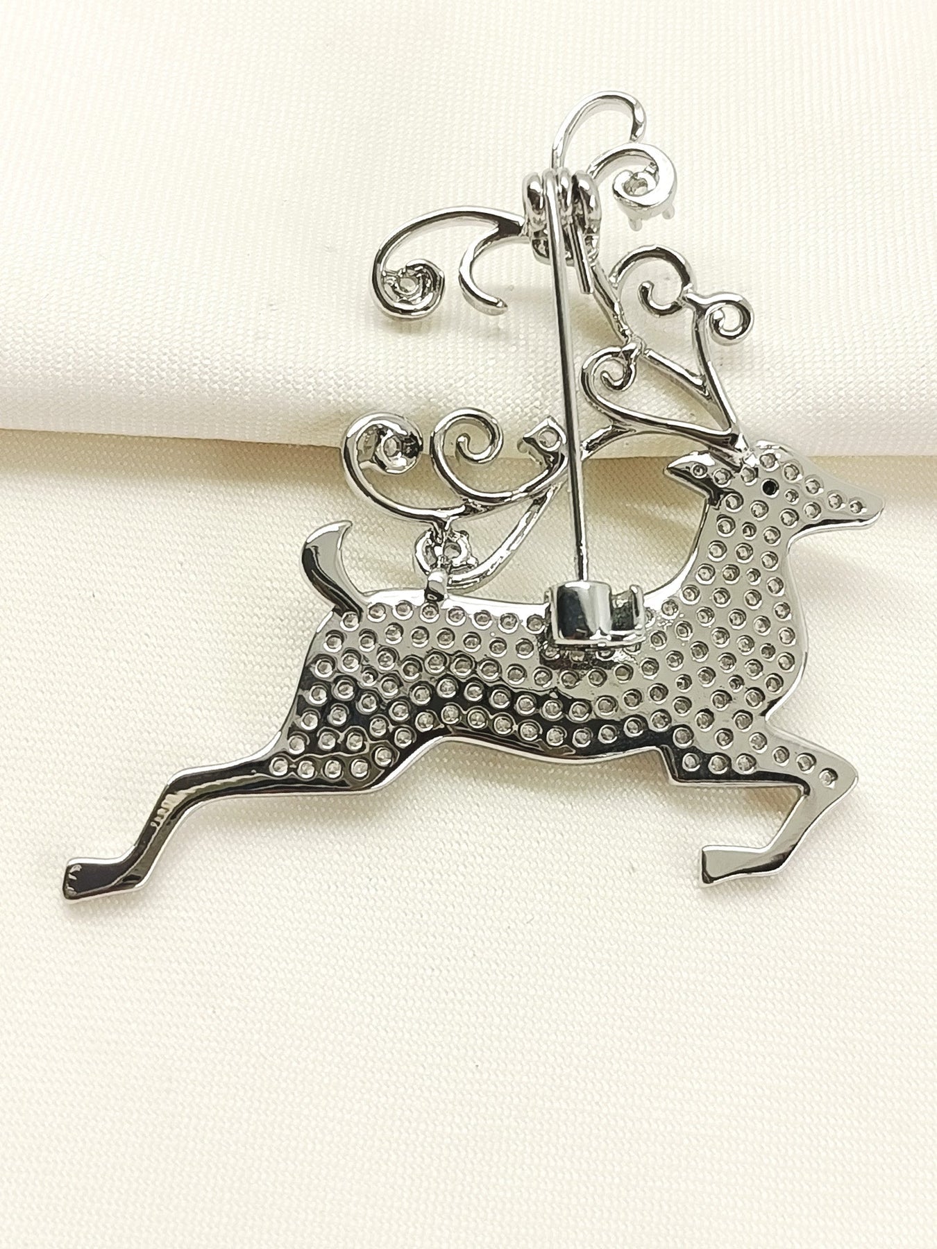 Elevate Your Festive Accessory Collection With This Exquisite Silver Reindeer Brooch, Meticulously Crafted From Premium Brass Metal With Lustrous Silver Plating. The Design Features Sparkling American Diamond Accents That Catch Light Beautifully, Adding Sophisticated Glamour To Any Occasion. Perfect For Adorning Lapels, Scarves, Or Evening Wear, This Brooch Combines Timeless Elegance With Contemporary Sparkle. The Durable Silver Plating Ensures Lasting Brilliance, While The American Diamond Embellishments Deliver Impressive Radiance Without Compromise. An Ideal Choice For Those Who Appreciate Refined Craftsmanship And Understated Luxury.