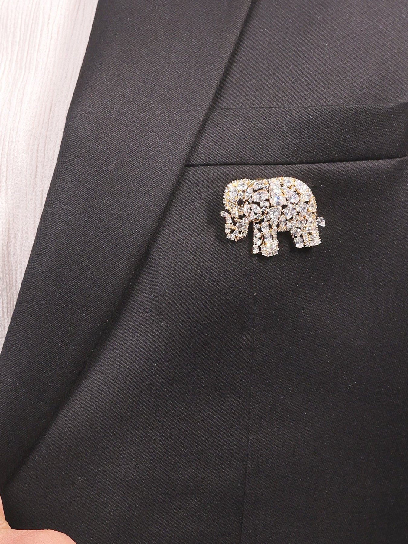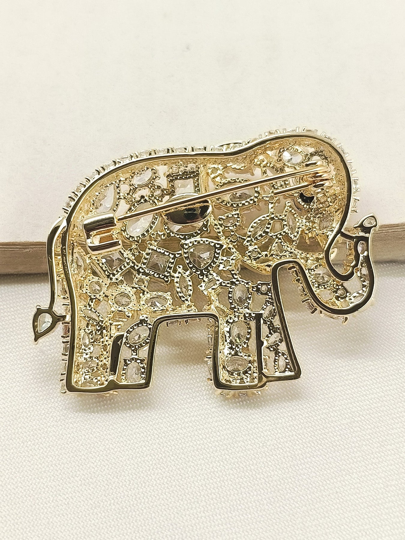 Elevate Your Accessory Collection With This Striking Black Elephant Brooch, Meticulously Crafted From Gold-plated Brass For Lasting Elegance. Adorned With Shimmering American Diamonds And Complemented By Semi-precious Black Stones, This Piece Combines Sophistication With Symbolic Grace. The Elephant Motif Represents Strength And Wisdom, Making It An Ideal Choice For Those Who Appreciate Meaningful Jewelry. Perfect For Formal Occasions Or As A Distinctive Everyday Accent, This Brooch Seamlessly Transitions From Boardroom To Evening Events. The Durable Gold Plating Ensures Enduring Brilliance, While The Carefully Selected Gemstones Create Captivating Visual Depth And Dimension.