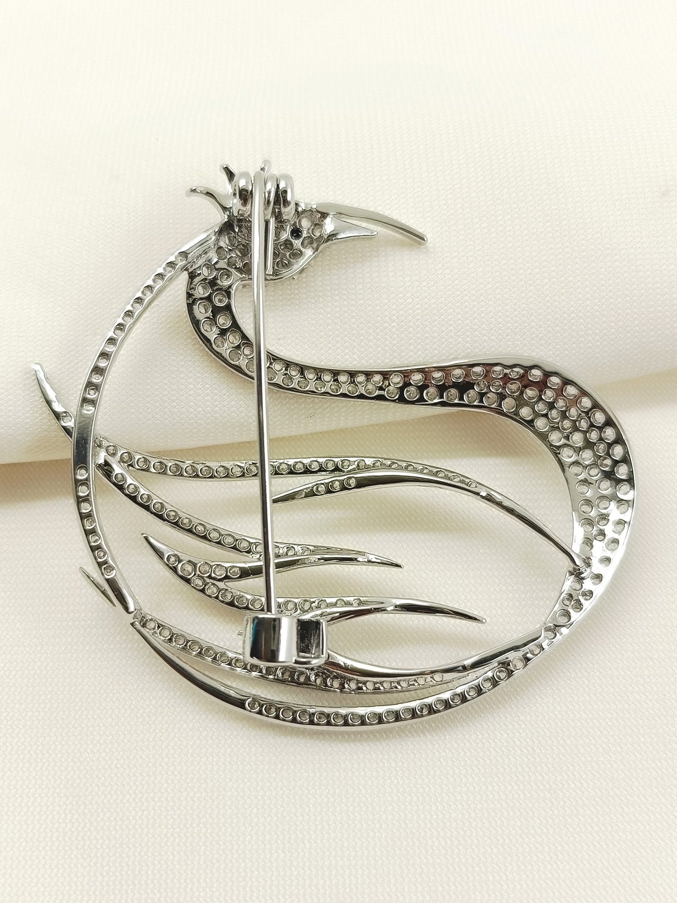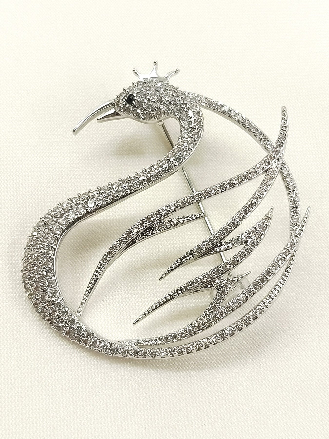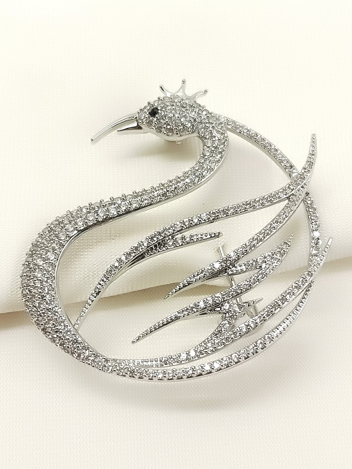 Elevate Your Accessory Collection With This Exquisite Silver Swan Brooch, Meticulously Crafted From Premium Brass With Lustrous Silver Plating. The Graceful Swan Design Showcases Brilliant American Diamond Accents That Catch Light Beautifully, Adding Sophistication To Any Ensemble. Perfect For Formal Occasions Or Everyday Elegance, This Brooch Combines Timeless Artistry With Contemporary Sparkle. The Durable Silver-plated Finish Ensures Lasting Radiance, While The Refined Detailing Reflects Expert Craftsmanship. An Ideal Statement Piece For Those Who Appreciate Fine Jewelry With Distinctive Character.