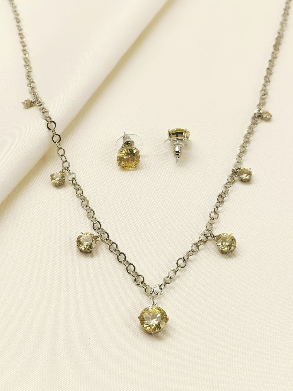 Grace Golden Silver Plated Diamonds Neck Piece With Earrings