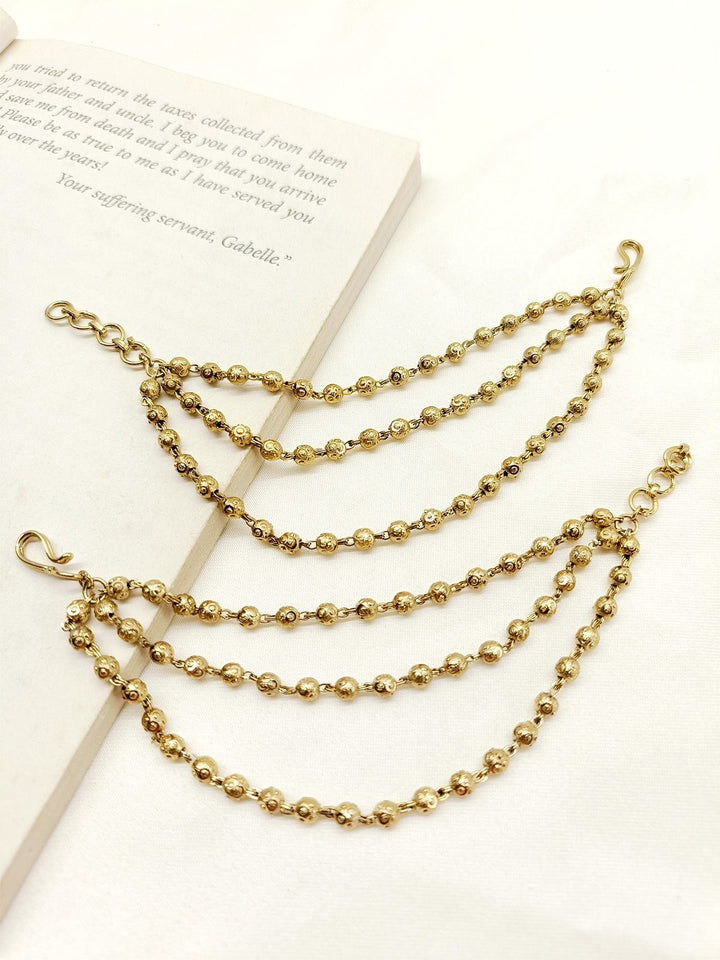 Traditional Beautifully Designed Antique Gold Plated Brass Metal Triple Layerd Kaan Chain For Ears To Give Complete Ethnic Look.