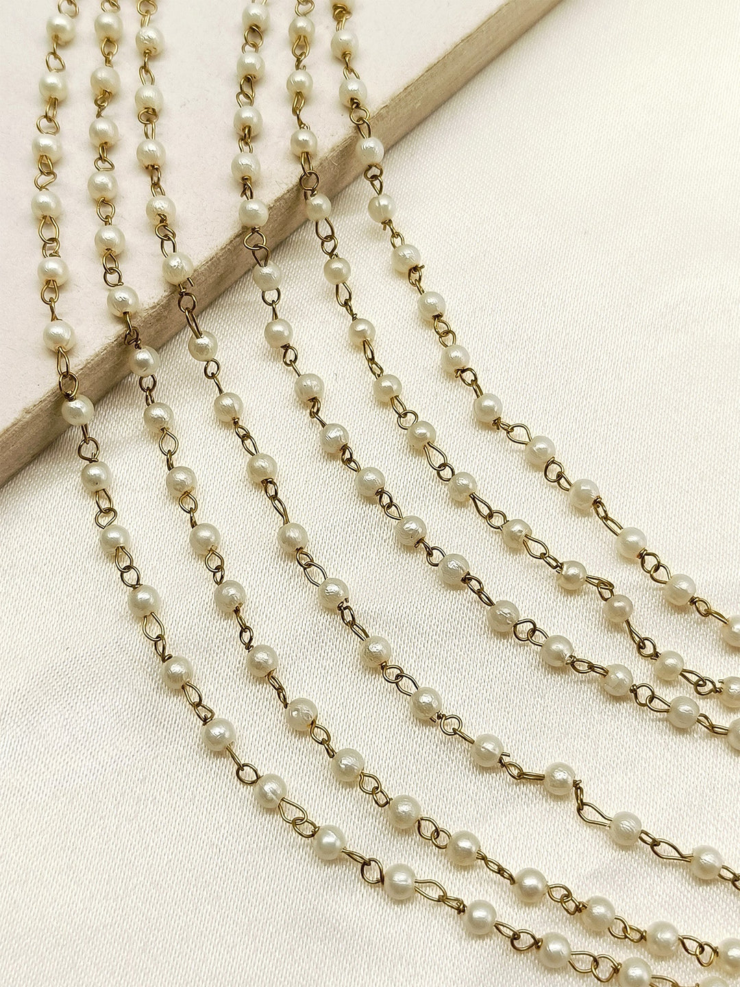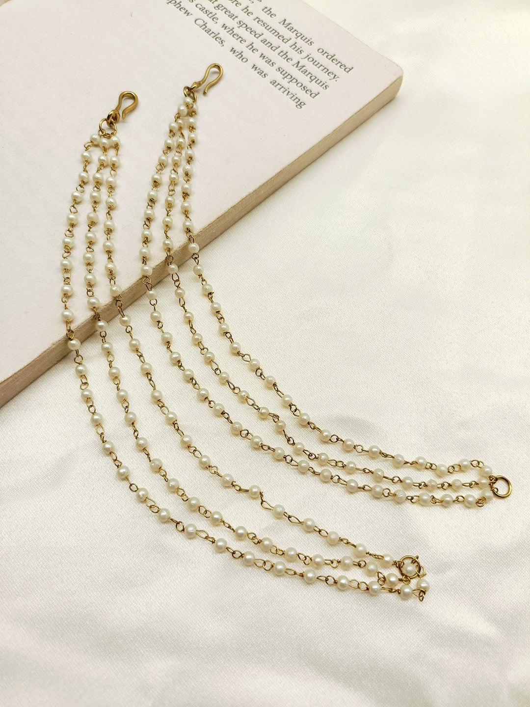 Enhance Your Traditional Look With Our Traditional Ear Chain. Made Of High-quality Antique Gold Plated Brass Metal, This Kaan Chain Features Exquisite Pearl. Perfect For Any Occasion, It Adds A Touch Of Elegance And Sophistication To Your Outfit. Update Your Jewelry Collection With This Must-have Accessory.