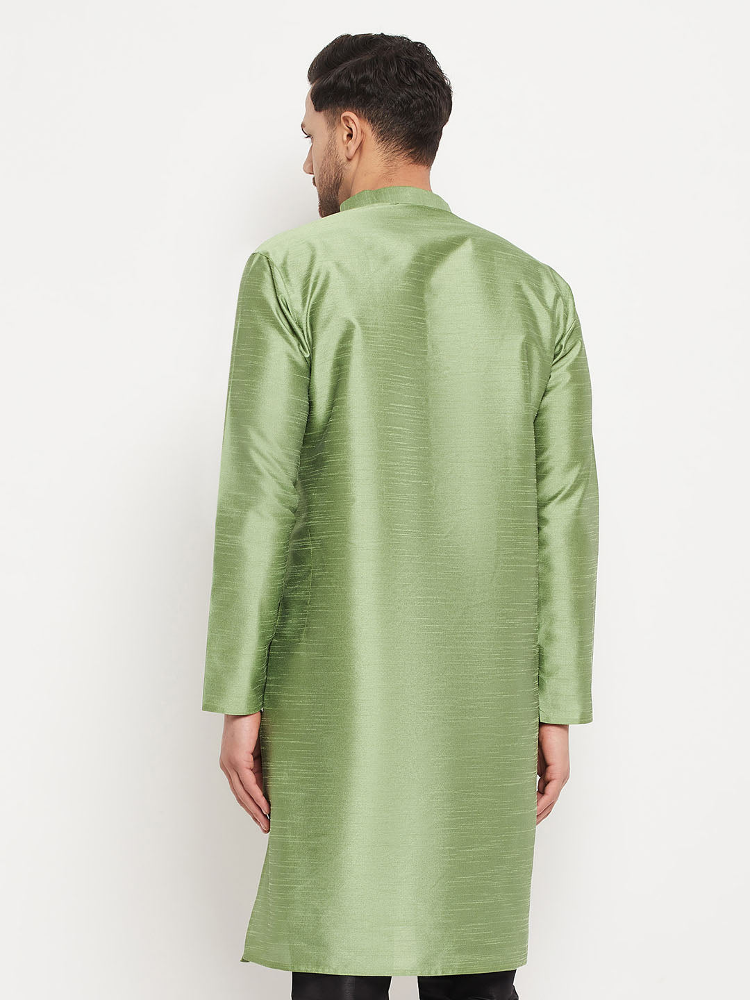 Men's Light Green Cotton Silk Blend Kurta