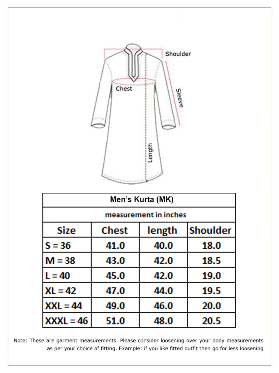 This men's embroidered kurta, pant set blends traditional craftsmanship with contemporary elegance.  intricate gold embroidery forming a geometric pattern. Long sleeves and a straight-cut silhouette for a refined look. Gold-trimmed placket adds a touch of sophistication. Side slits ensure comfort and easy movement. Ideal for Eid, weddings, receptions, and festive celebrations.